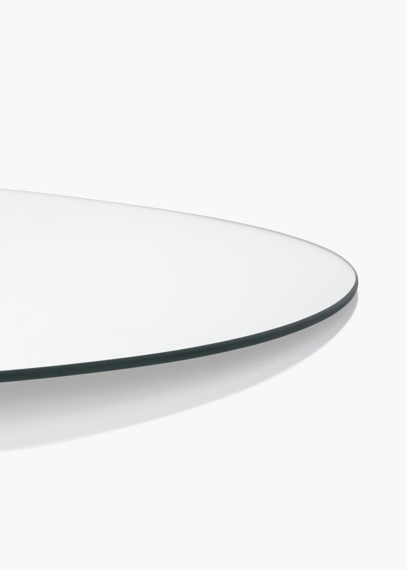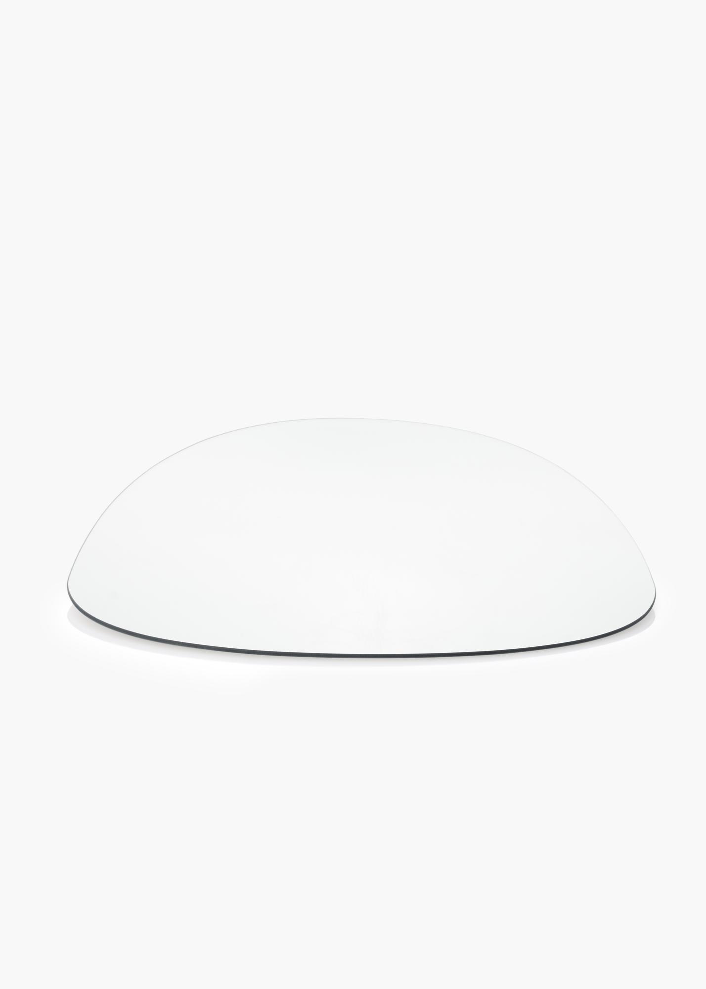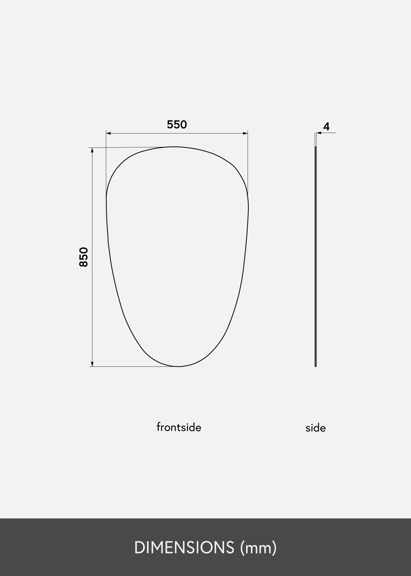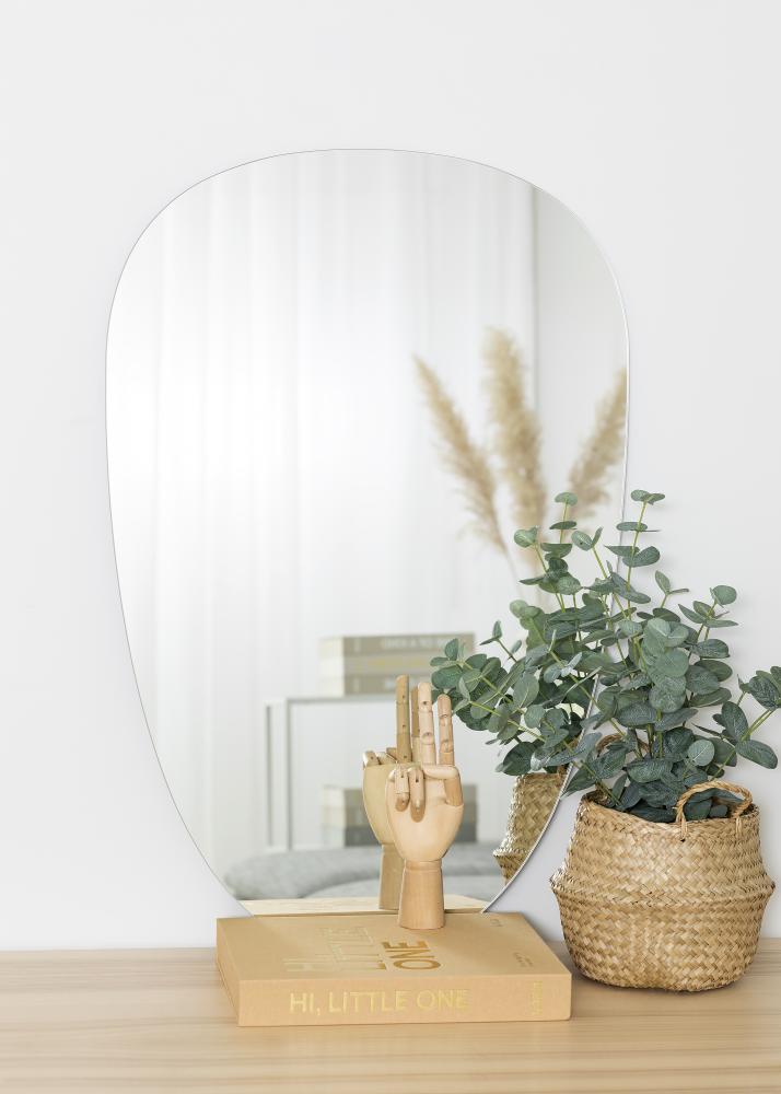 This asymmetrical mirror from KAILA adds a modern element to any home décor. The mirror has a subtle uneven oval shape that creates an arresting detail. Combined with the thin unframed design, this mirror adds an elegant and modern touch to any room.