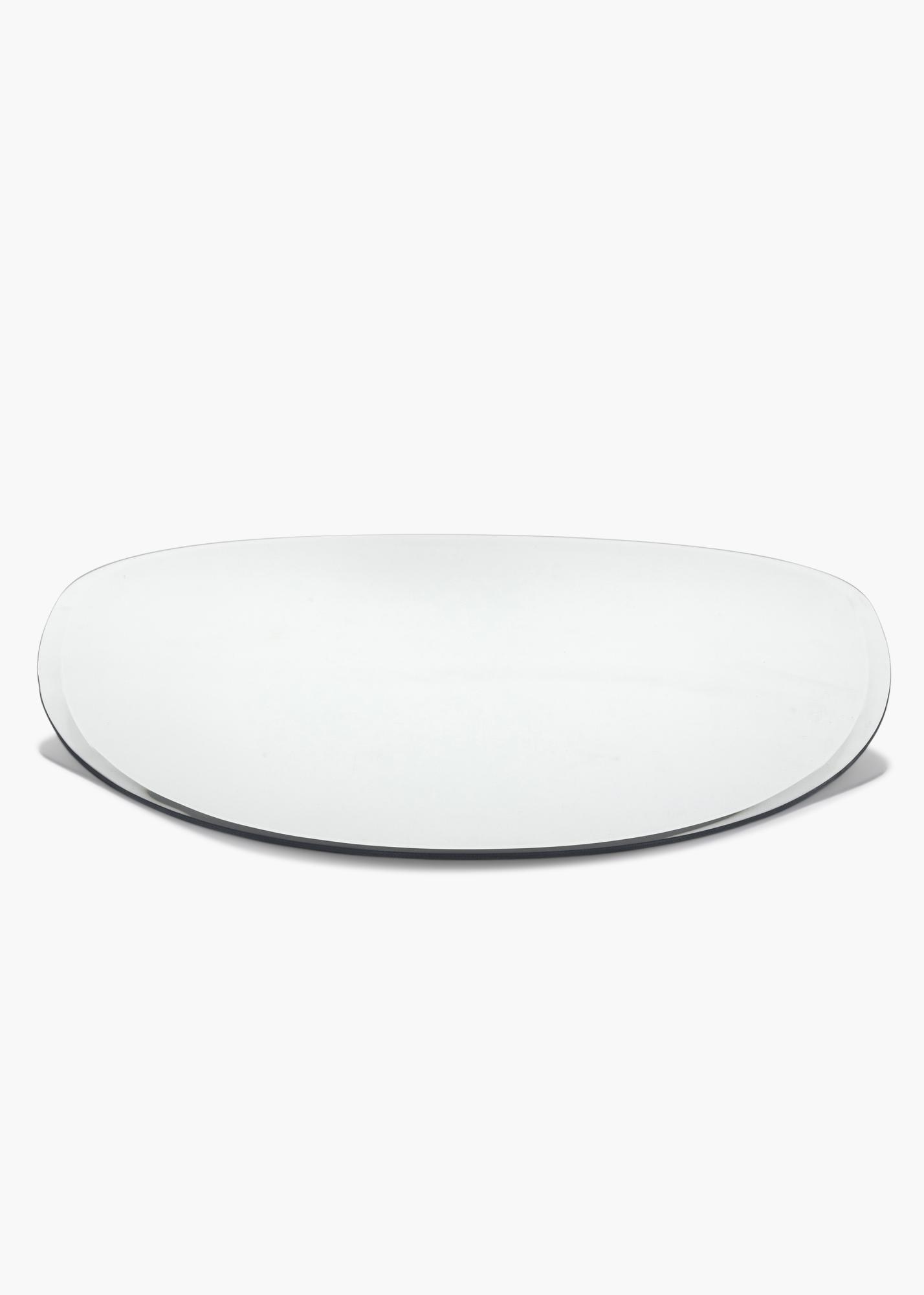 This asymmetrical mirror from KAILA adds a modern element to any home décor. The mirror has a subtle uneven oval shape that creates an arresting detail. Combined with the thin unframed design, this mirror adds an elegant and modern touch to any room. It also has an elegant faceted edge.