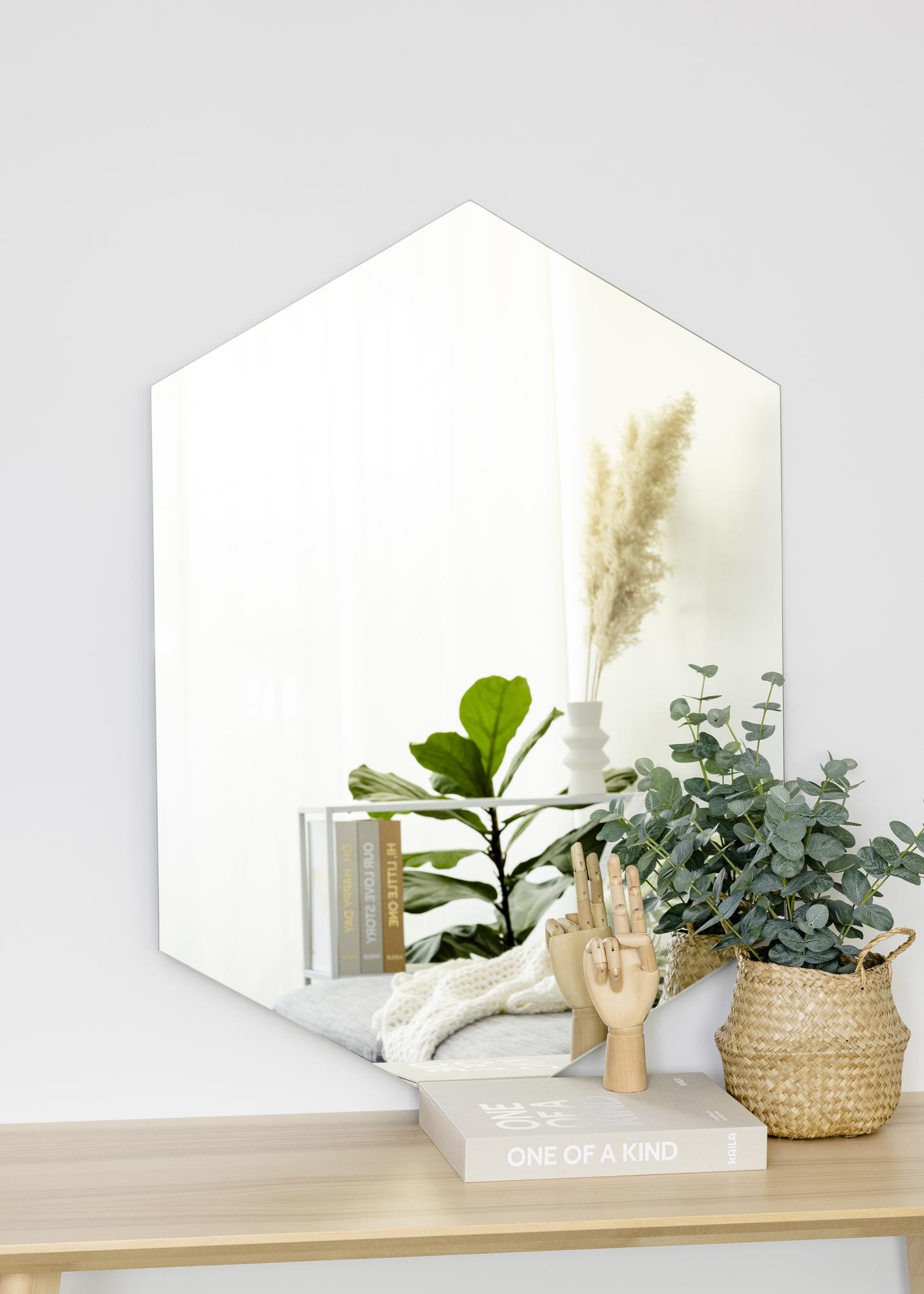 This stylish mirror from KAILA has a minimalist and timeless design that suits any interior décor. You can easily hang the mirror using the wall bracket and add a beautiful detail to the bedroom or living room. The classic design is enhanced by the mirror's thin, colourless glass. The elegant 70x100 cm hexagonal mirror will fit perfectly in most rooms.