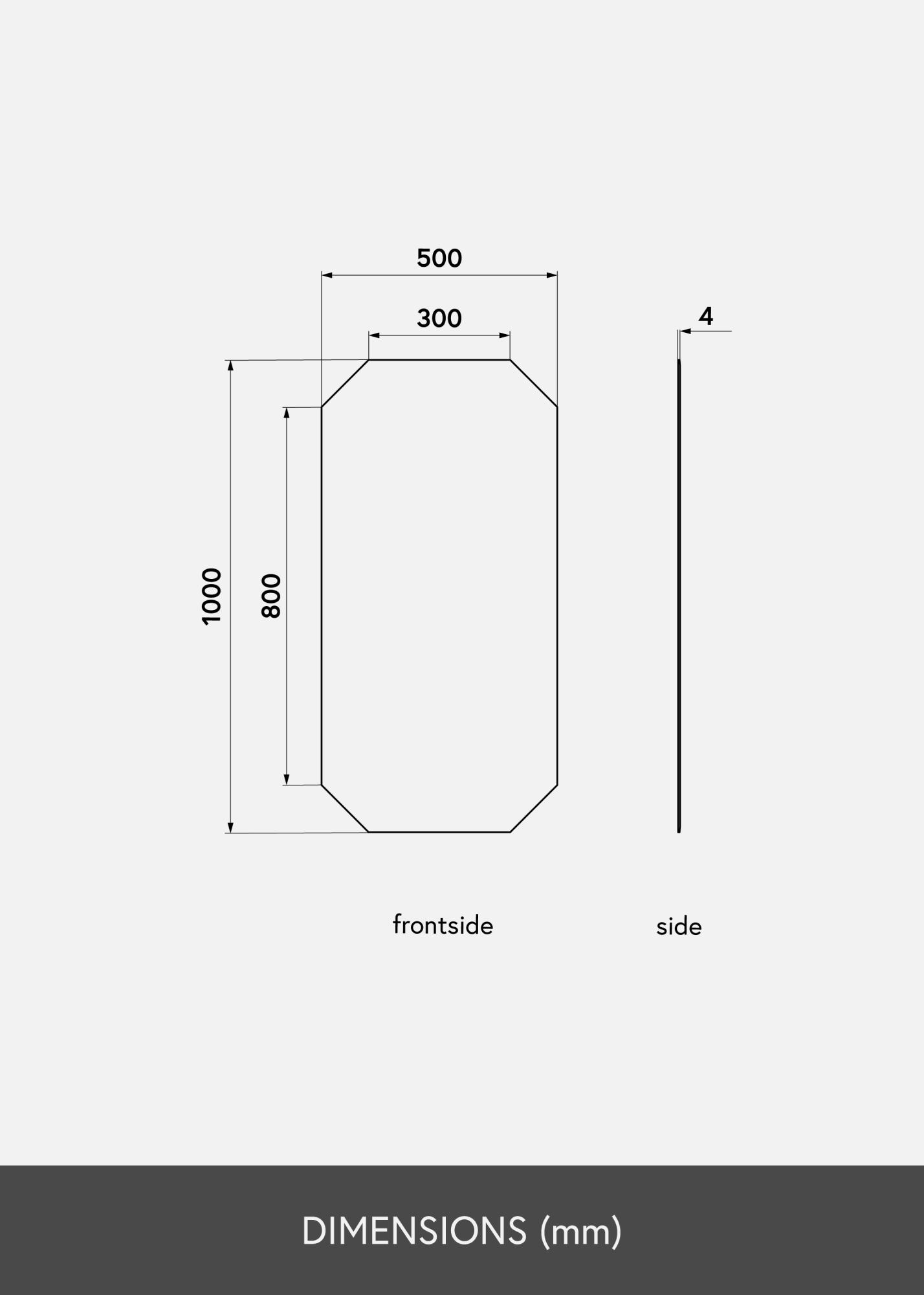 Octagonal mirror from KAILA with an elegant minimalist design - perfect for every home! This mirror will look fantastic in the living room or bedroom, and will blend seamlessly into any interior décor. The mirror measures 50x100 cm and includes a wall hanger for easy display in the room of your choice. The thin wall mirror is unframed, which creates a clean and crisp minimalist touch.