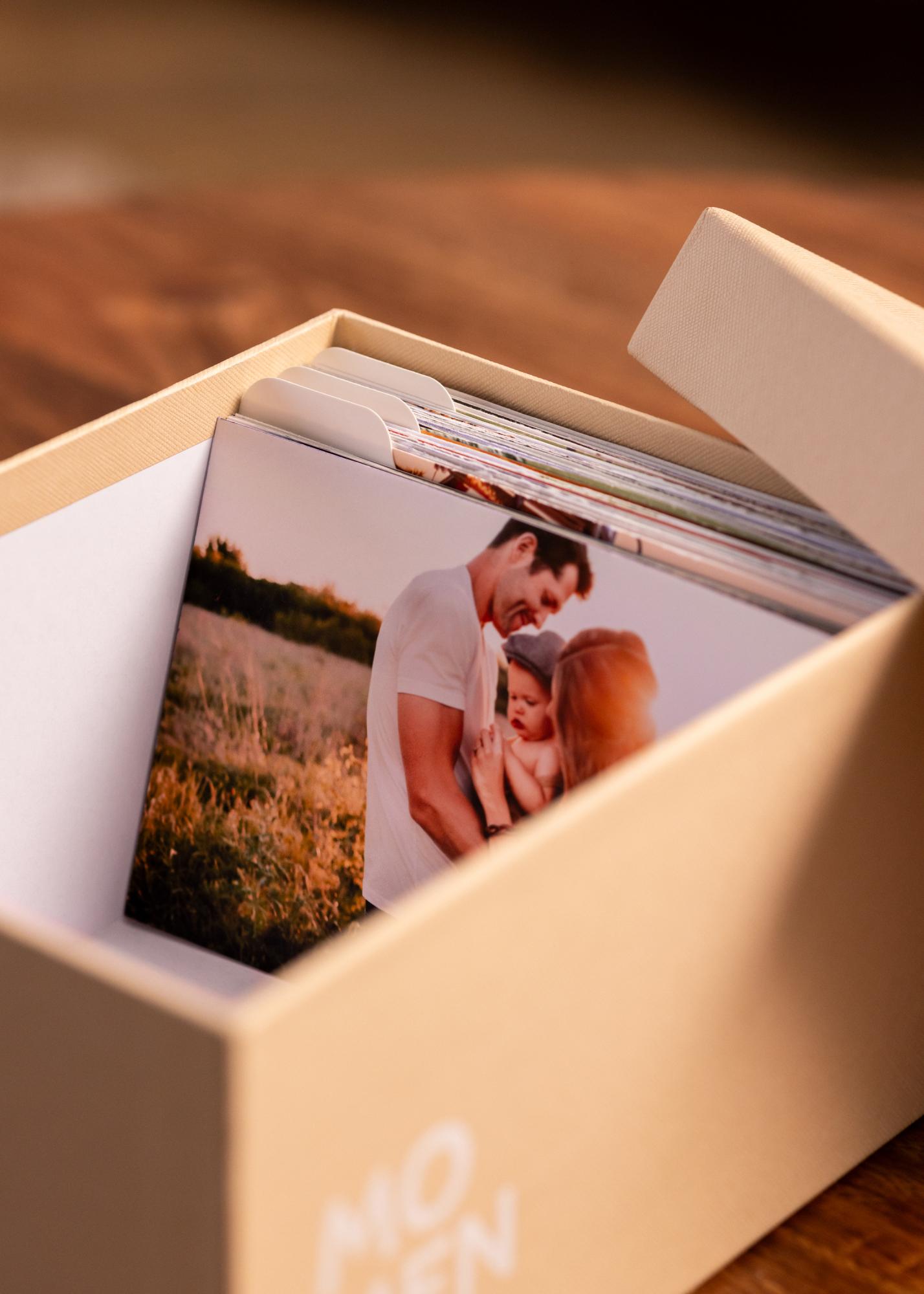 KAILA Memories Photo Box is an elegant and functional photo box that holds up to 700 pictures in the size 10x15 cm. The cream-colored design provides a soft and stylish feel that blends into most homes. Perfect for organizing and preserving your favorite memories in a beautiful and practical way.