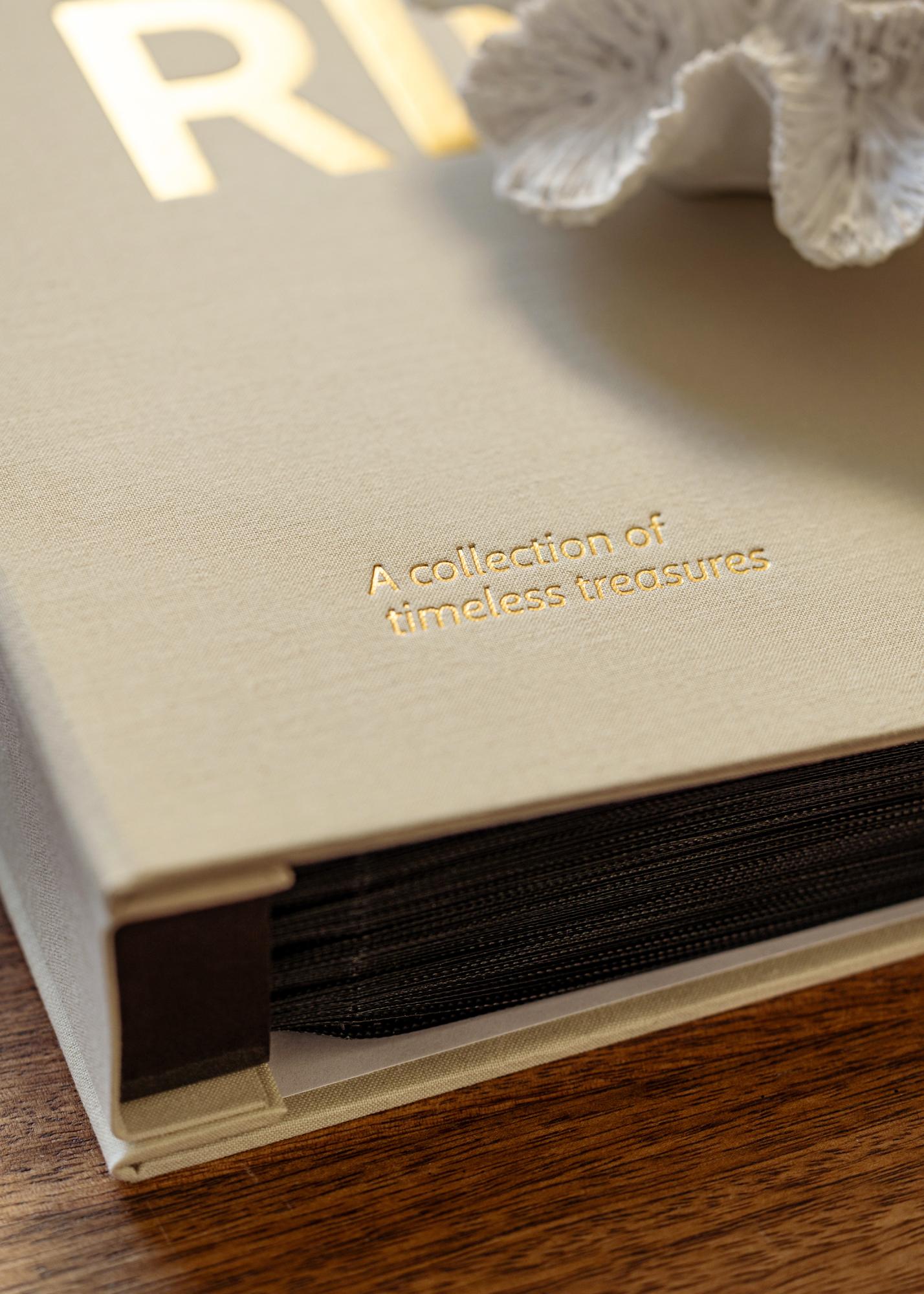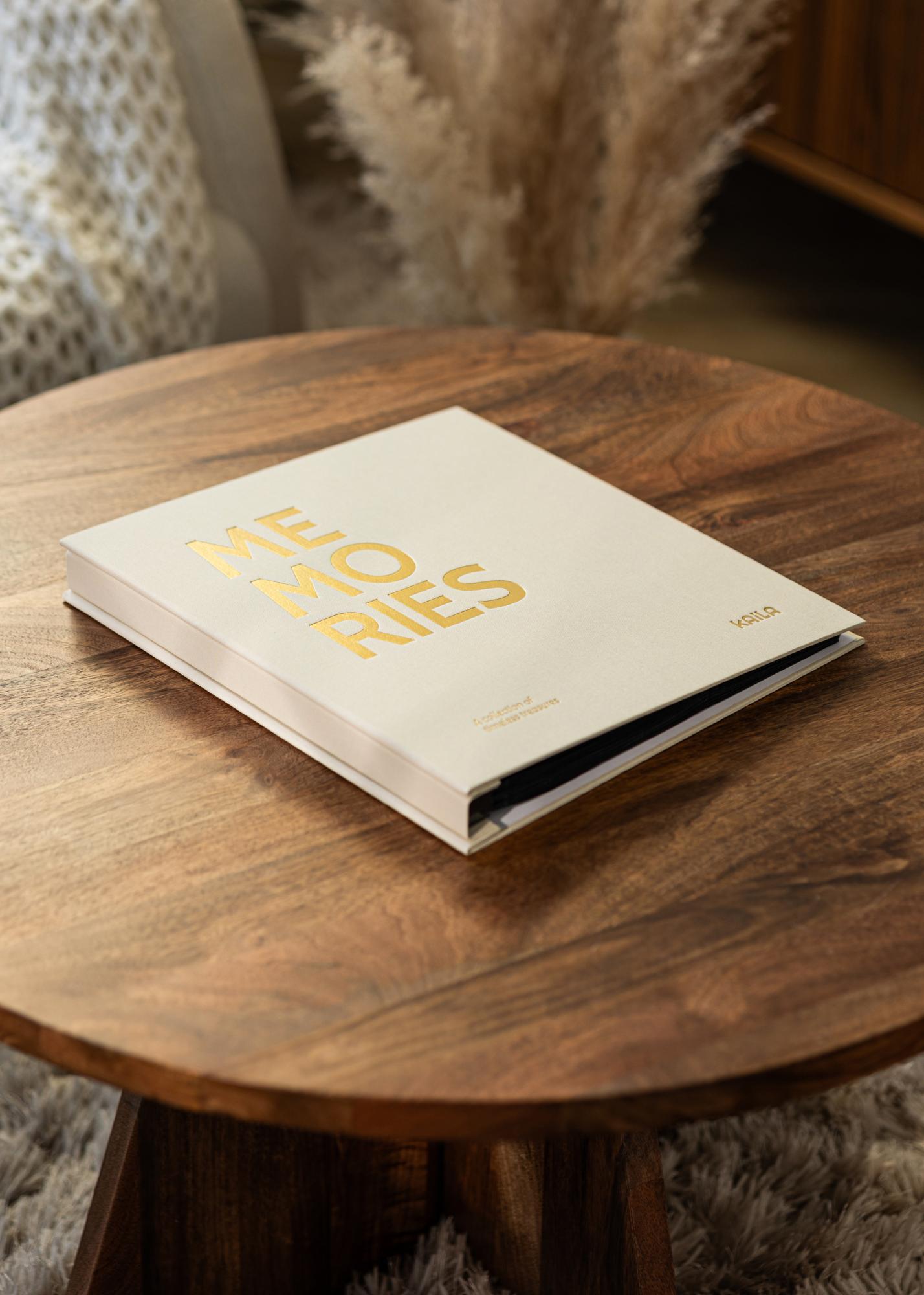 This is a sleek photo album with a timeless design and practical photo pockets – perfect for those who want to preserve their best photo memories in a stylish and simple way. The album is covered in a beige textile and the front is adorned with the text "MEMORIES" in gold print. For an extra touch, the album also has the subtitle "A collection of timeless treasures" written in one corner. The textile-covered covers, along with the text's gold colour, make the photo album a luxurious interior detail that you will want to keep on display.