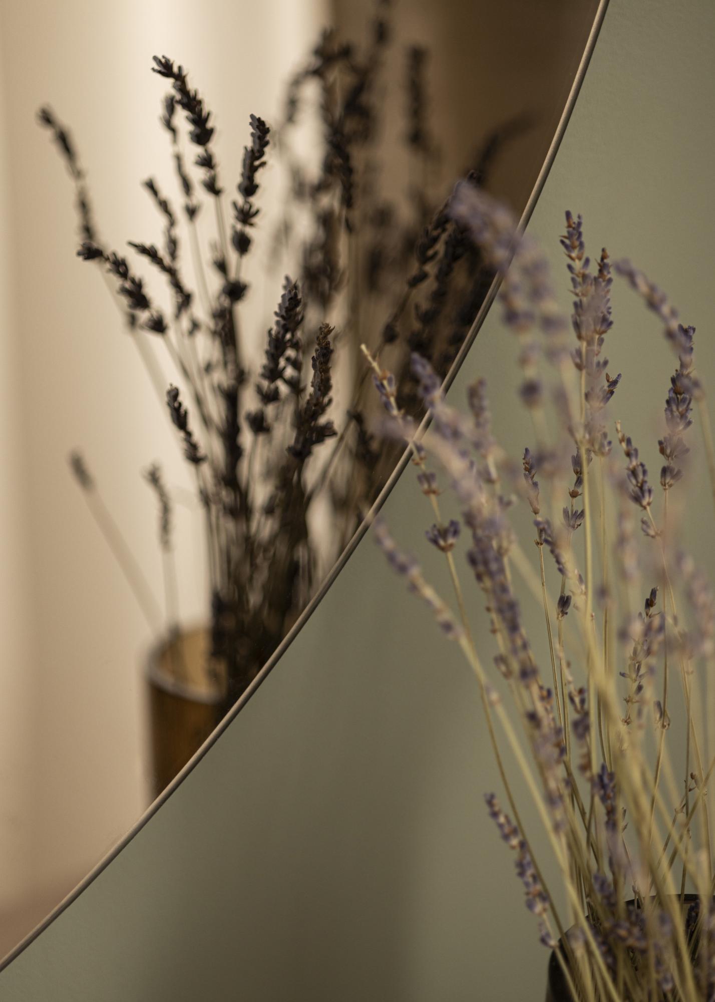 This round mirror has a thin, unframed design, creating an elegant and exclusive look that adds a splash of style to any room. With bronze-coloured mirror glass, this wall mirror offers a rich and cosy appearance that fits perfectly in modern homes. The mirror is part of a series of round, bronze-coloured mirrors from KAILA with seven different sizes, giving a wide range of choice. This model has a diameter of 110 cm. You can easily hang the mirror in the hall or living room using the mirror's wall bracket.