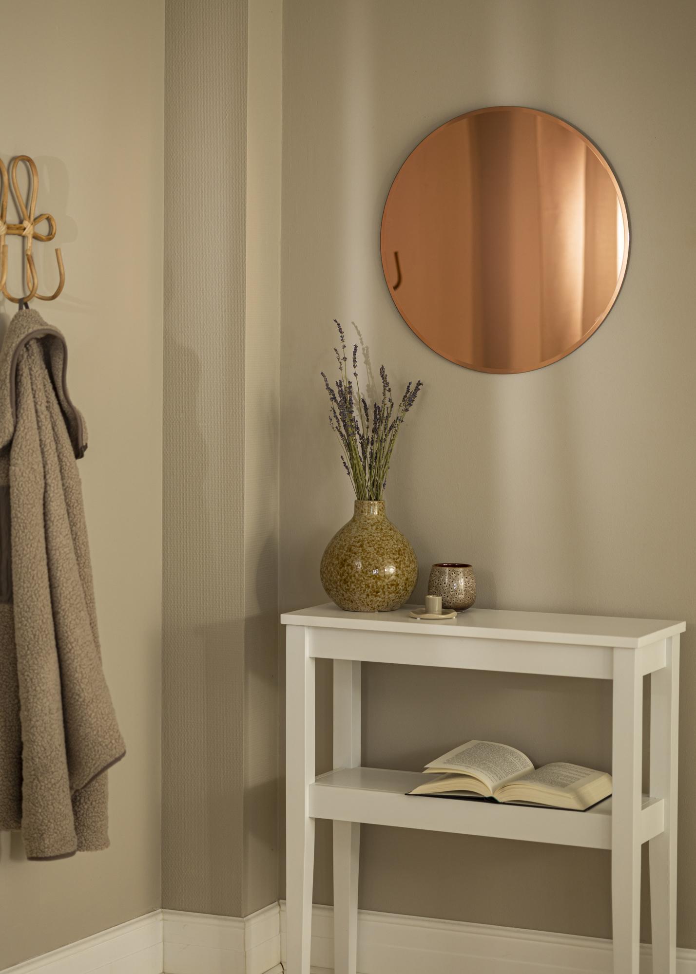 Rose Gold Deluxe is a wall mirror in a timeless design with the modern twist of tinted mirror glass. The warm shade of rose gold gives an exclusive and unique feel which combines perfectly with the soft, round shape. The elegantly ornate bevelled edge gives this mirror a touch of finesse.
