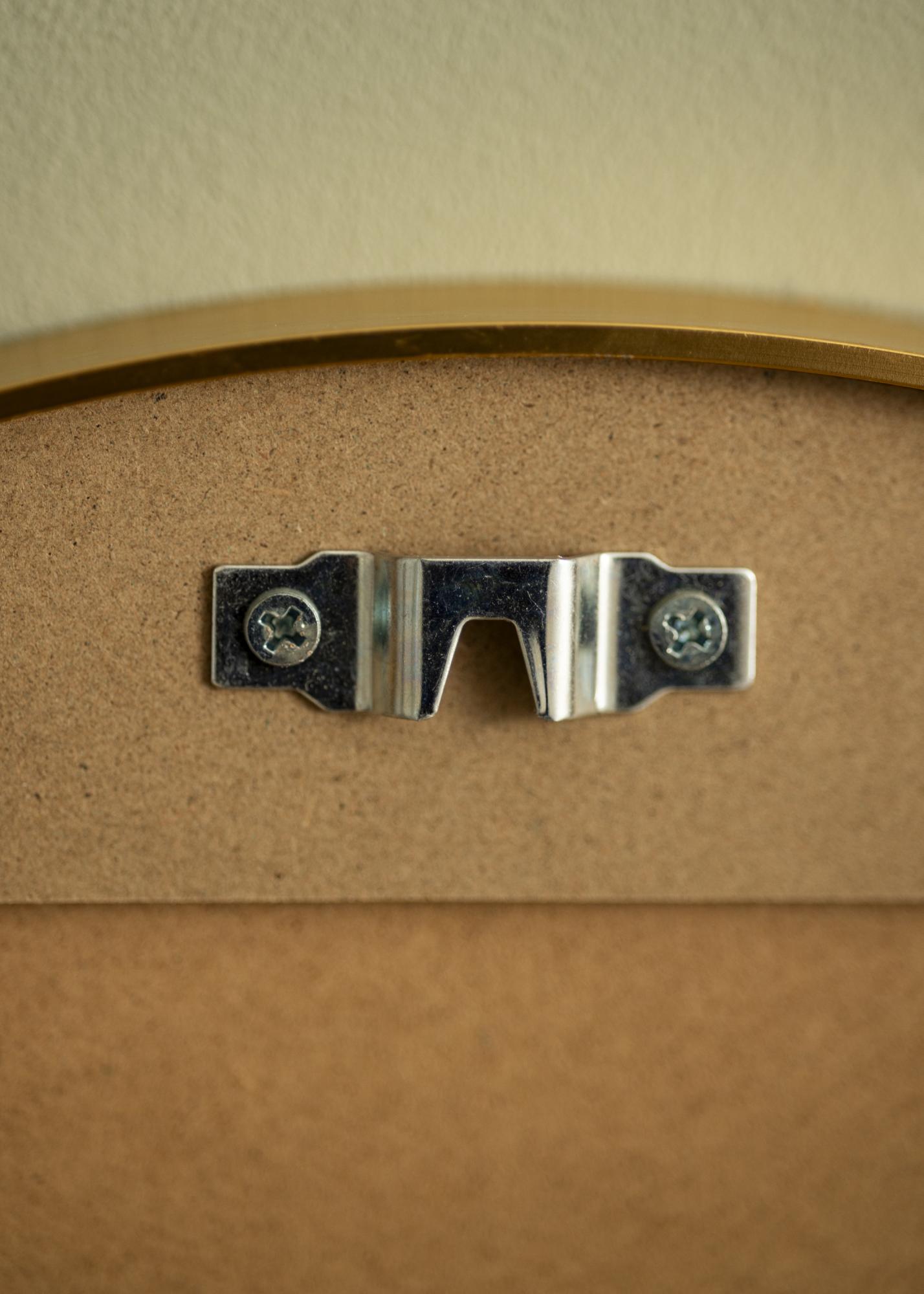 KAILA Round Mirror Edge Gold is available in several sizes, and this model has a diameter of 40 cm. On the back of the mirror are two pre-assembled wall mounts for easy and stable hanging on your wall. Matching screws and wall plugs are included.