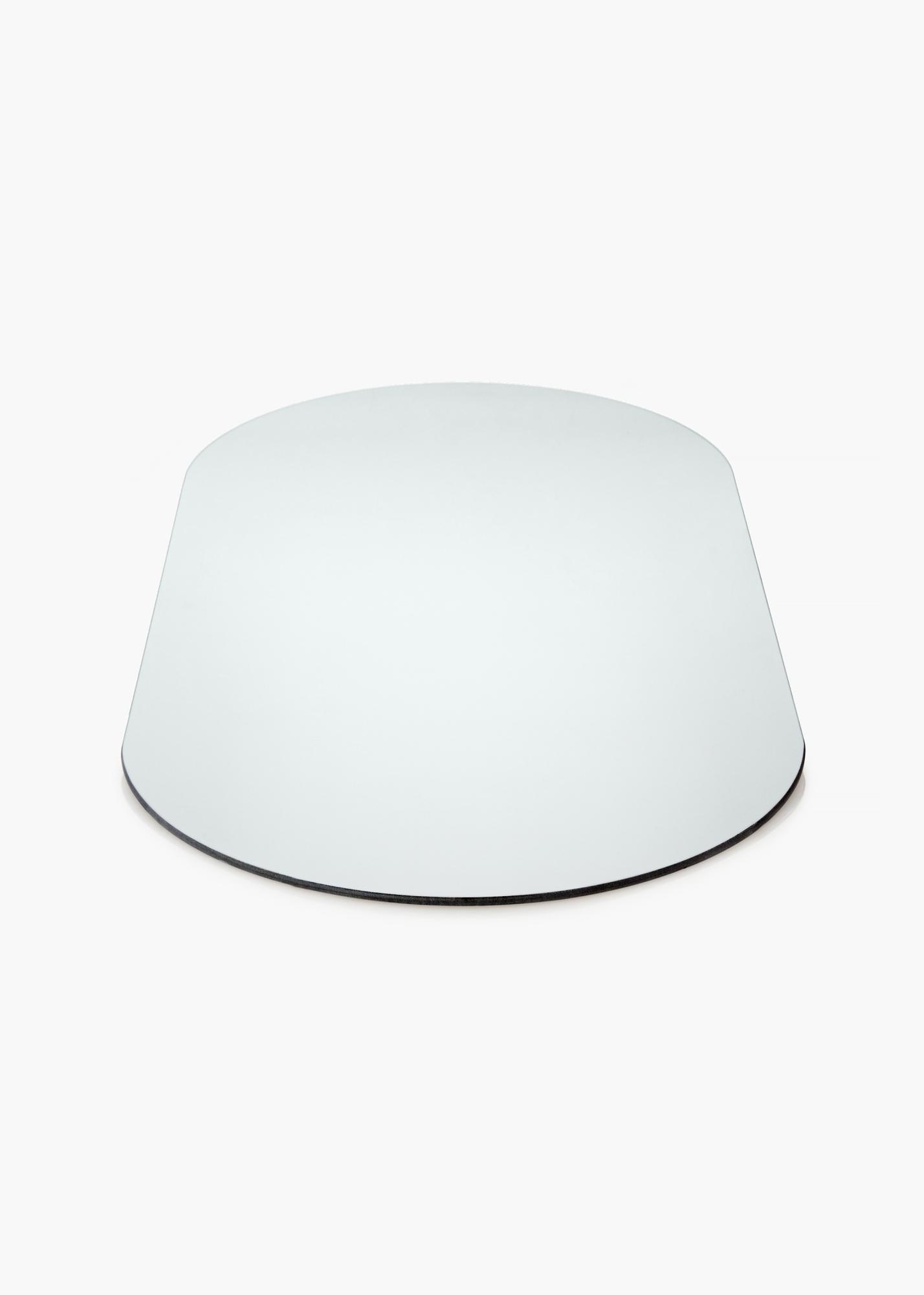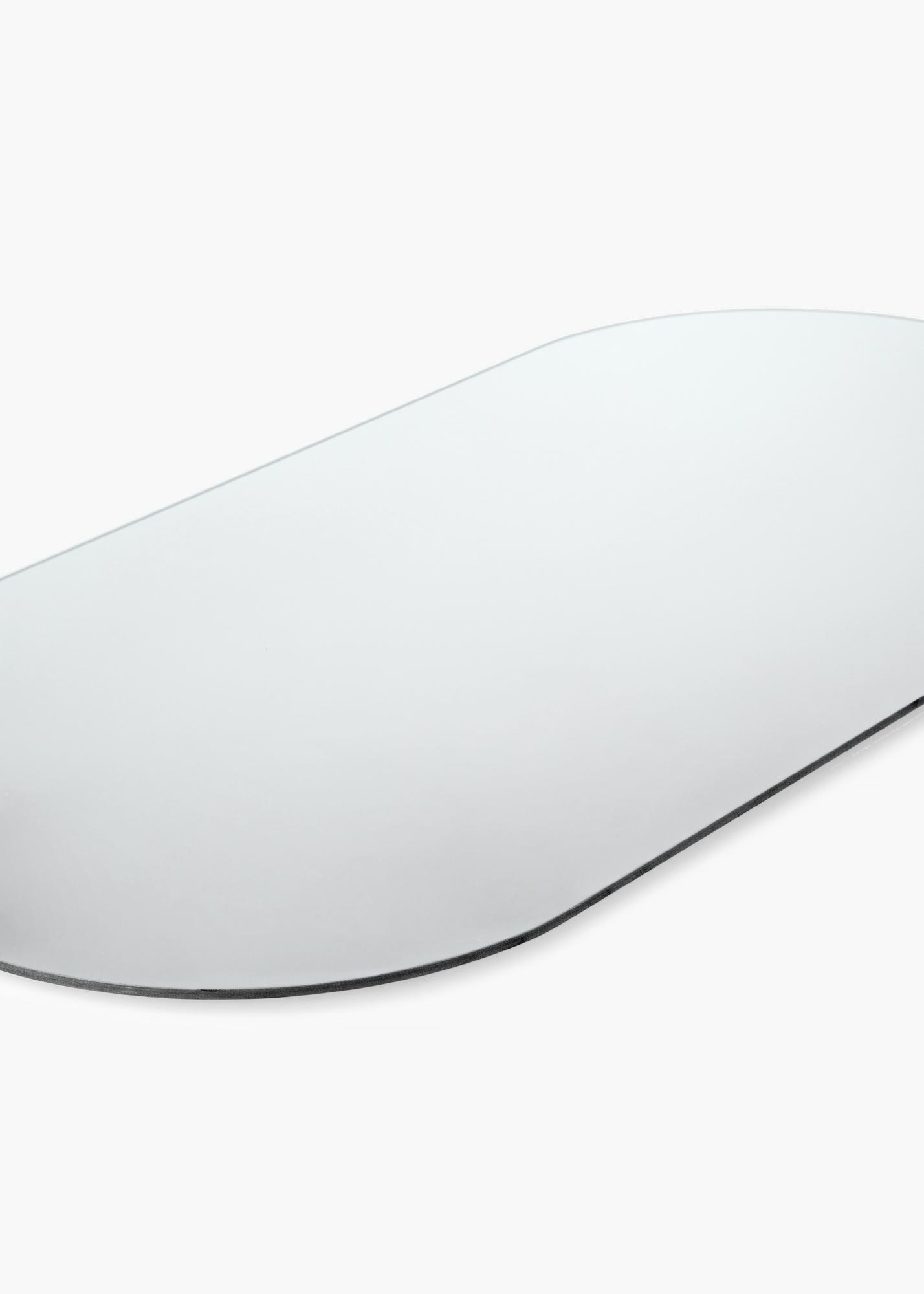 This beautiful mirror has an oval shape that creates a soft and elegant look. The mirror is thin and frameless, which enhances the elegant design.