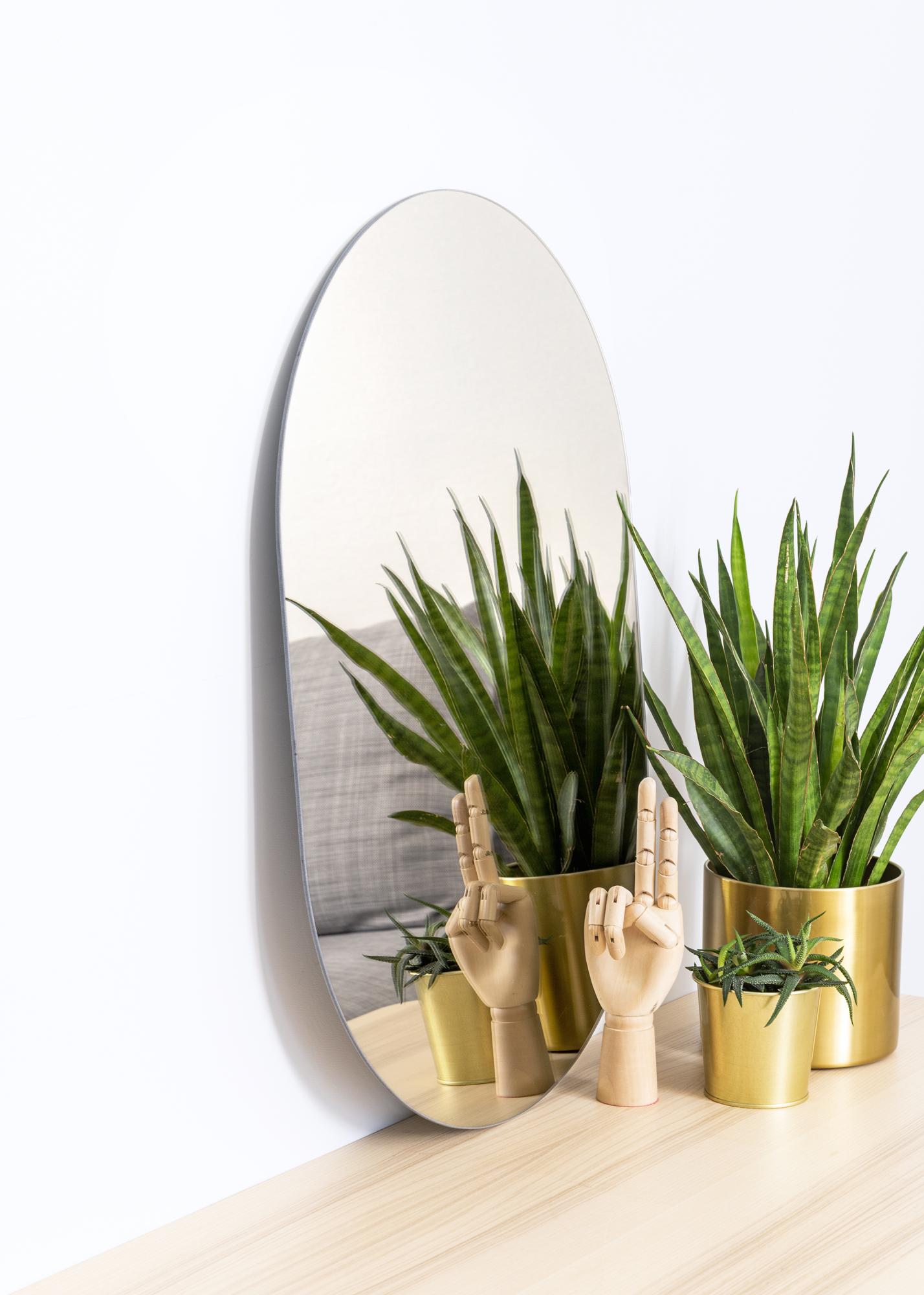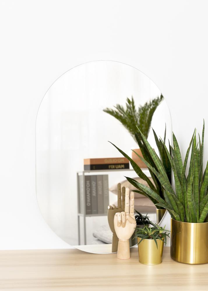 Create a soft and inviting atmosphere in your home with an oval mirror like this one. This mirror is only 4 mm thick and is designed in a soft shape to create an elegant wall mirror. A mirror that is both modern and timeless, matching perfectly with any home, whether trendy or classic.