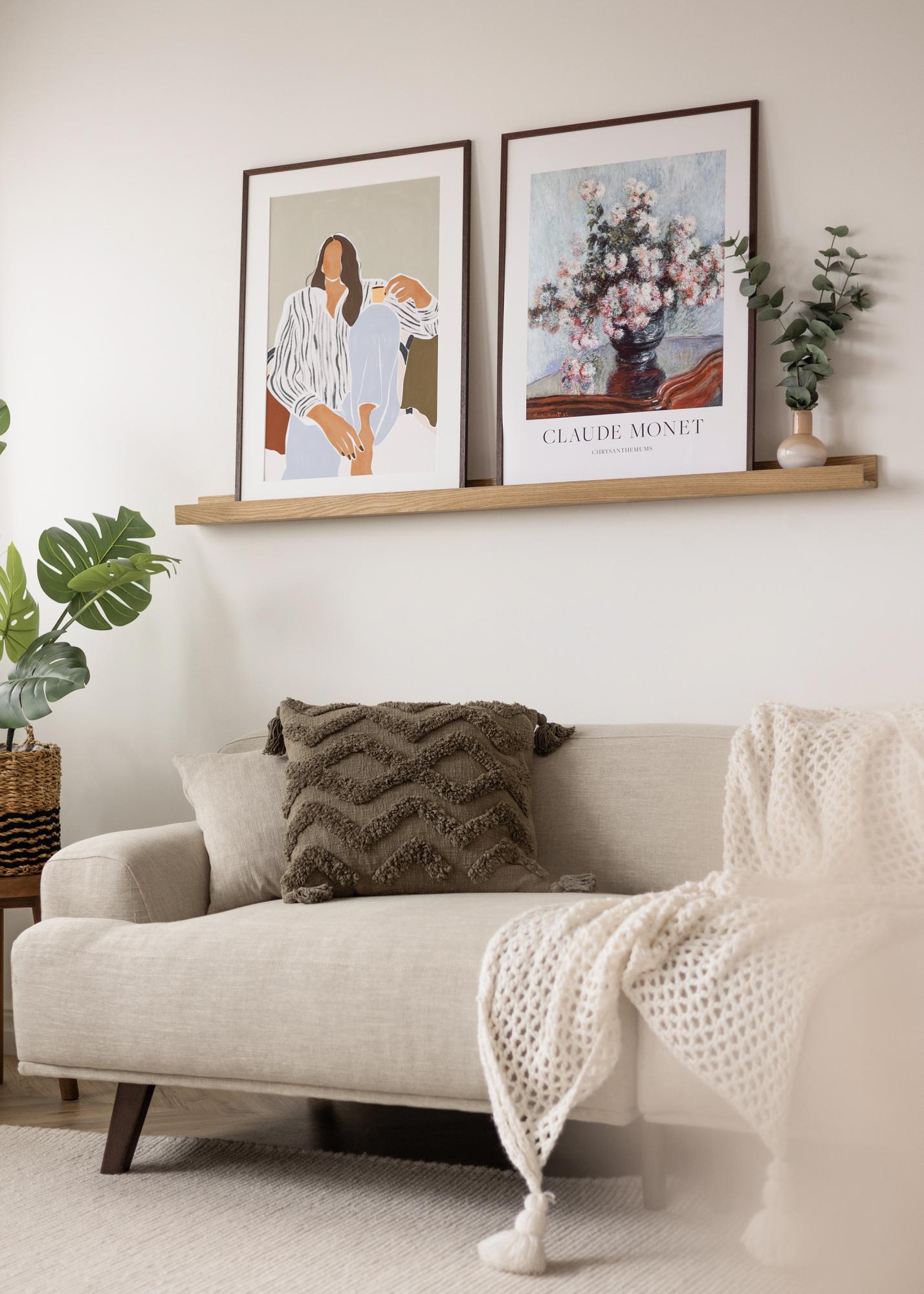 With a practical picture shelf, you showcase your pictures in an elegant way and also get excellent opportunities to vary your wall art. This picture shelf is made of solid oak and has a stylish design with simple, straight lines. The shelf itself has a milled groove that provides support for your pictures and gives them a nice angle as they lean against the wall. The picture shelf is available in several different lengths, of which this variant has a length of 140 cm. The picture shelf also has pre-drilled holes, and to make it all a bit easier, suitable screws and plugs are included.
