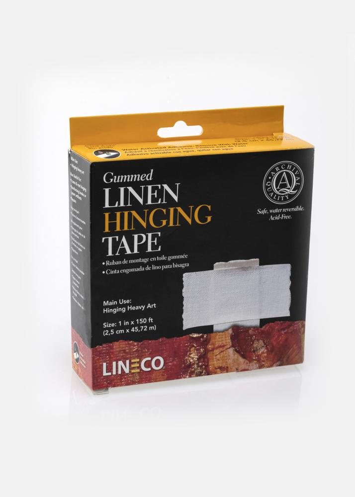 Rubberised acid-free linen tape. For hanging heavier works of art. Apply pressure to the tape for 15 min before using. 25 mm x 45.72 mtr, 63g m2.