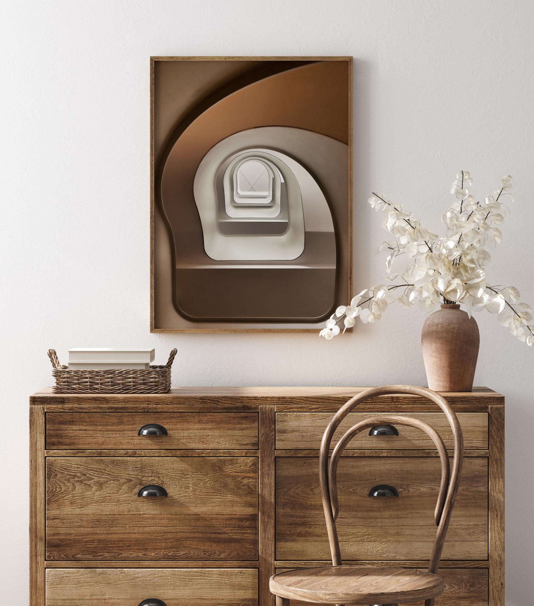 The artist plunges you in a surreal, indecipherable abyss. This mysterious print gets you thinking. With its multiple meanings and interpretations, this image is an ideal conversation starter that will get your guests talking and wondering. Place this piece in your living room for best results.