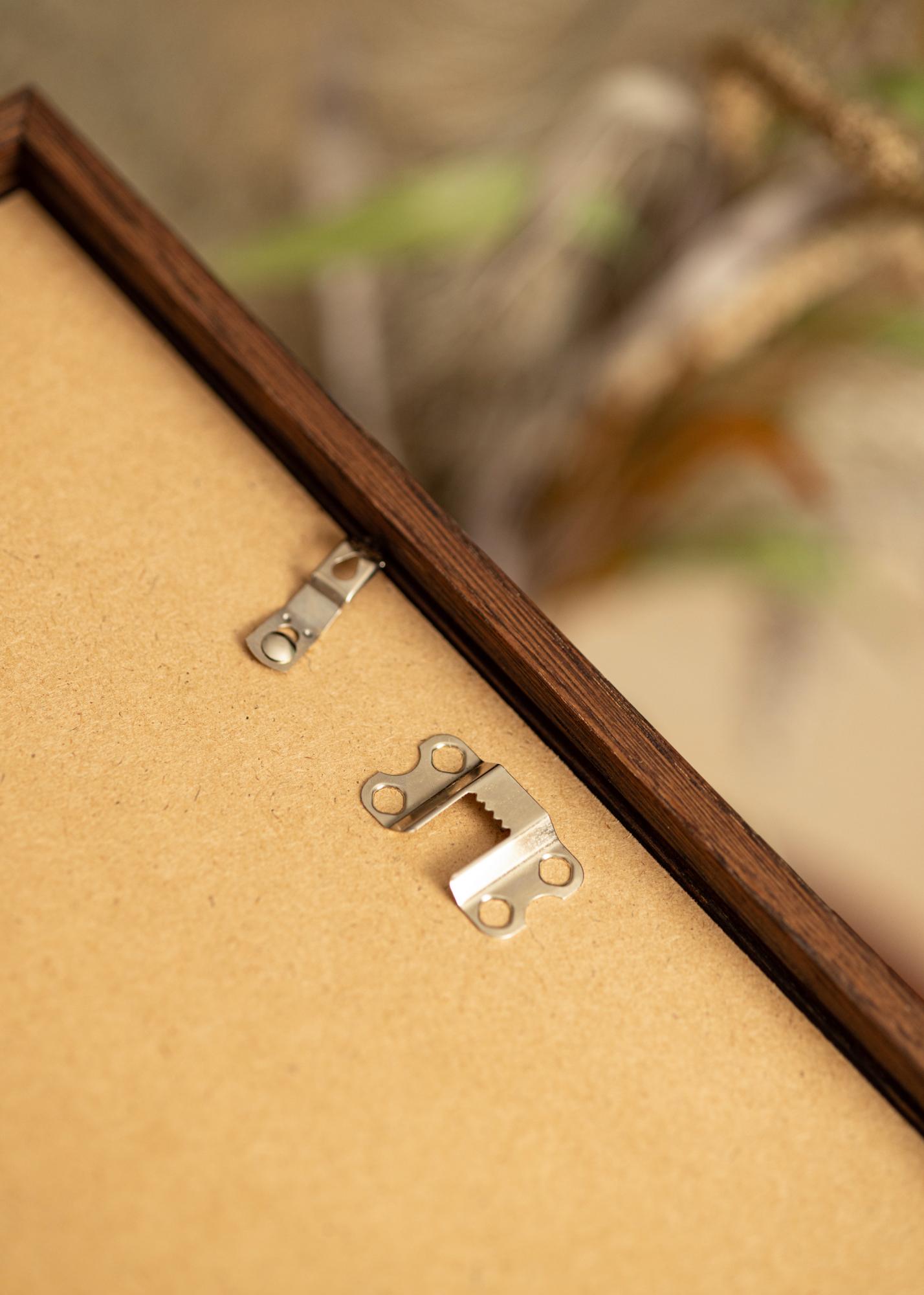 The photo frame is made of sustainable pine and has a frame moulding measuring 13.5 mm in width and a depth of 22.5 mm. This gives the frame a stable and robust feel while maintaining an elegant profile. It is equipped with metal hangers on the back, making it easy to hang both horizontally and vertically depending on your motif's needs.