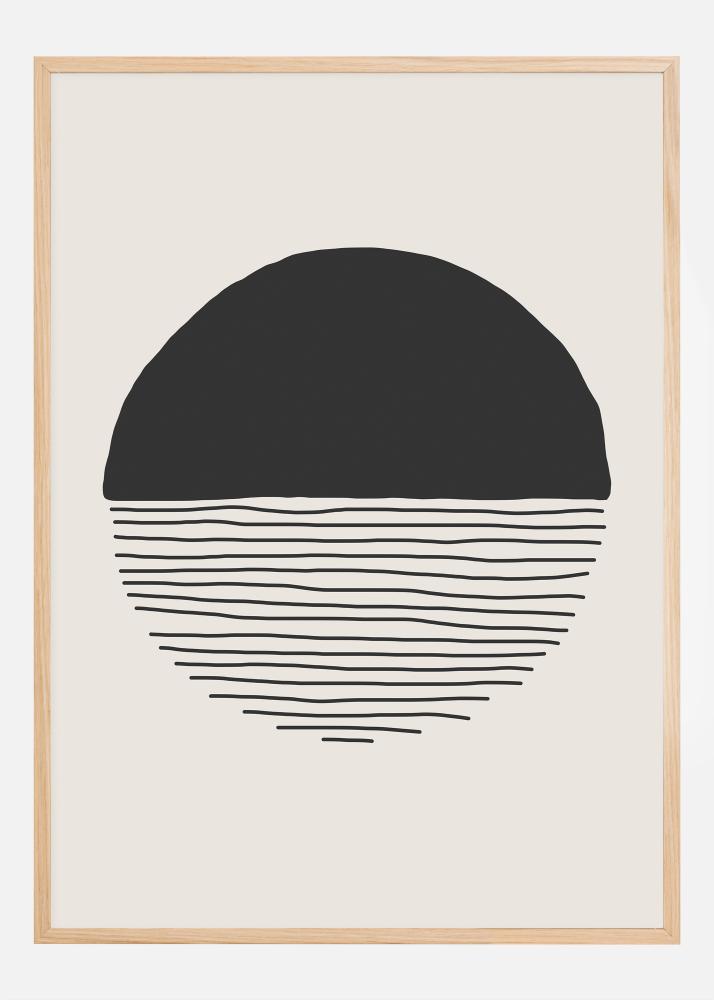 This poster is a tribute to the purity and power of minimalist design. In the motif, we see a semicircle in deep black that appears to float above a series of horizontal lines in the same dark color. This simple yet bold contrast against the cream-colored background creates a strong visual effect. It is perfect for giving a modern and sophisticated impression in a space that values tight design and strong, graphic elements.