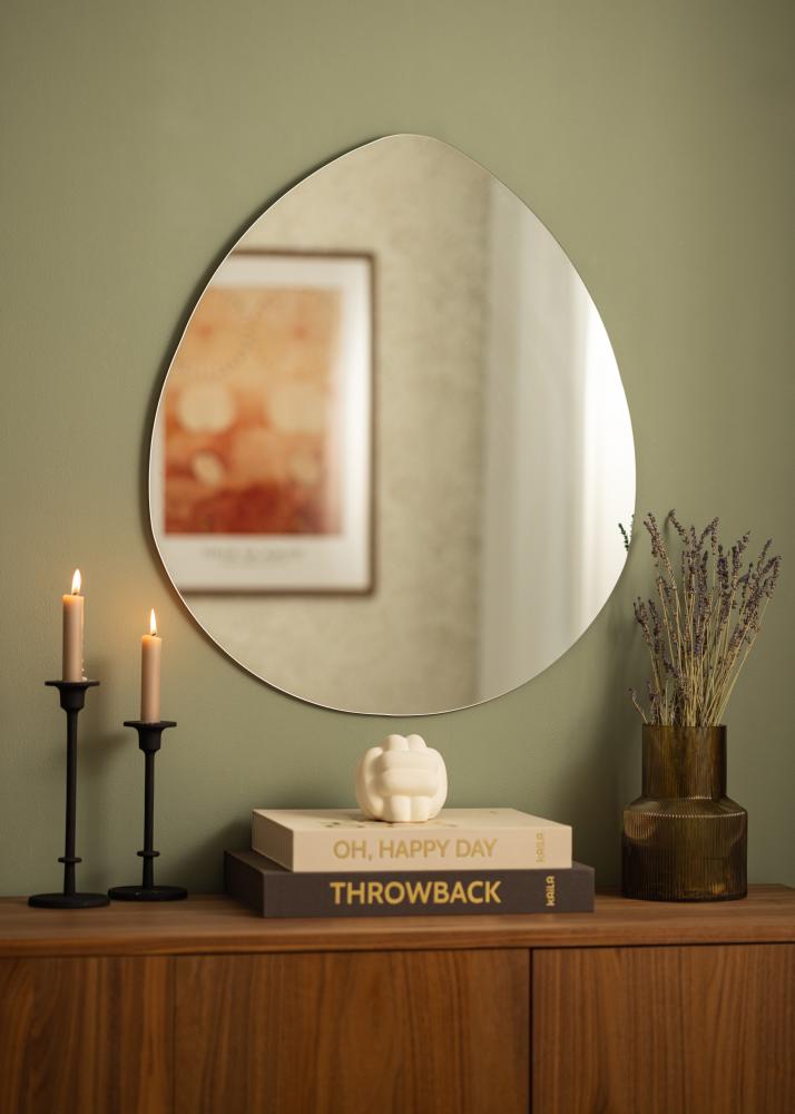 Discover the unique charm of our egg-shaped mirror, an elegant interior detail that combines function with a modern design. With its soft lines and rounded contours, this mirror adds a feeling of lightness and style to any room. The measurements of 60x70 cm make it a practical and decorative wall accessory that is perfect for the hallway, bedroom, or bathroom.