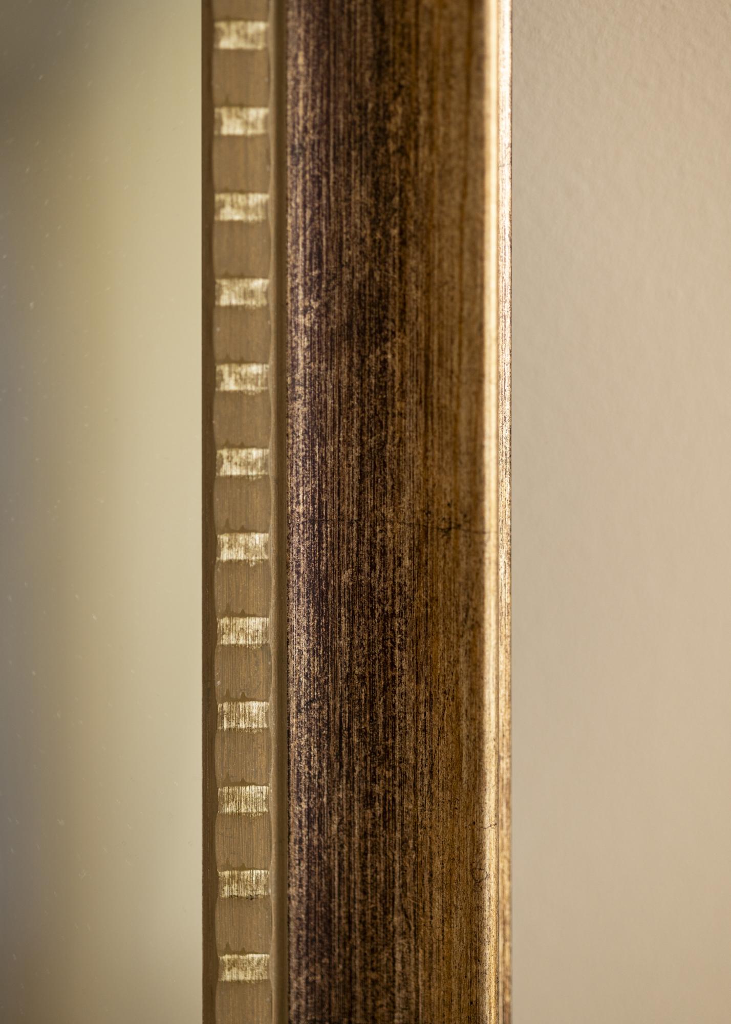 A decorative inner edge is adorned with small, regular gold-colored details. These create an elegant contrast against the darker wood tone and add an extra dimension of sophistication. The outer edge has a soft bevel with a discreet gold finish, providing the frame with a luxurious and timeless feel that never goes out of style.