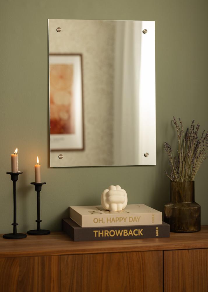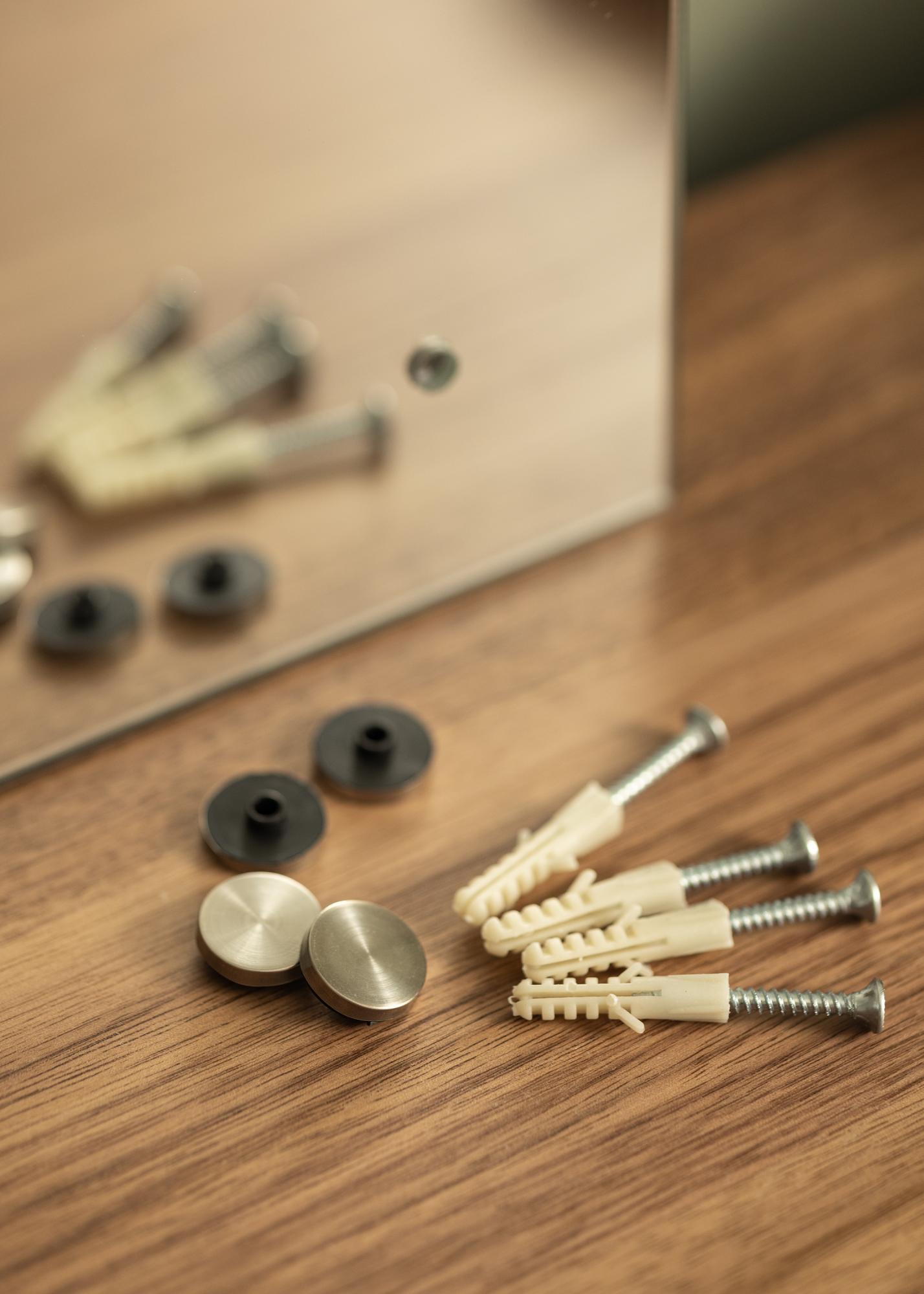 The detail of visible screw holes in each corner of the mirror adds an industrial feel that complements the simple design. This functional and aesthetically pleasing mirror is an excellent choice for those looking for a versatile interior detail with character. Choose for yourself which side is up or down and create a personal touch in your home.