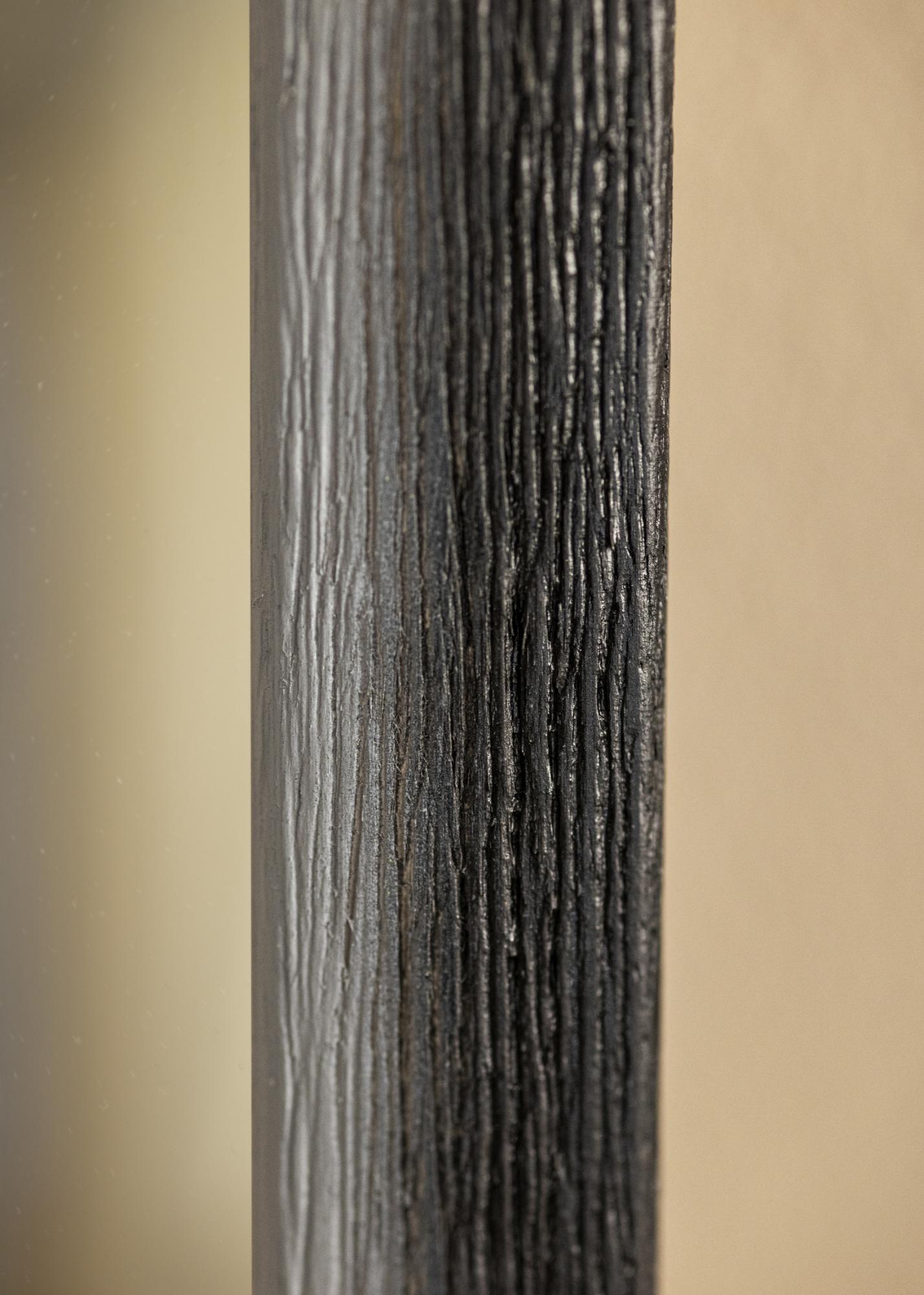 The frame of Mirror Cornwall Black is 23 mm wide and has a depth of 13 mm, providing a slim and sleek profile. Made of Ayos wood, the frame highlights the wood's natural character with its distinct grains and rustic feel. This combination of material and design creates a mirror that is not only functional but also a beautiful interior detail.