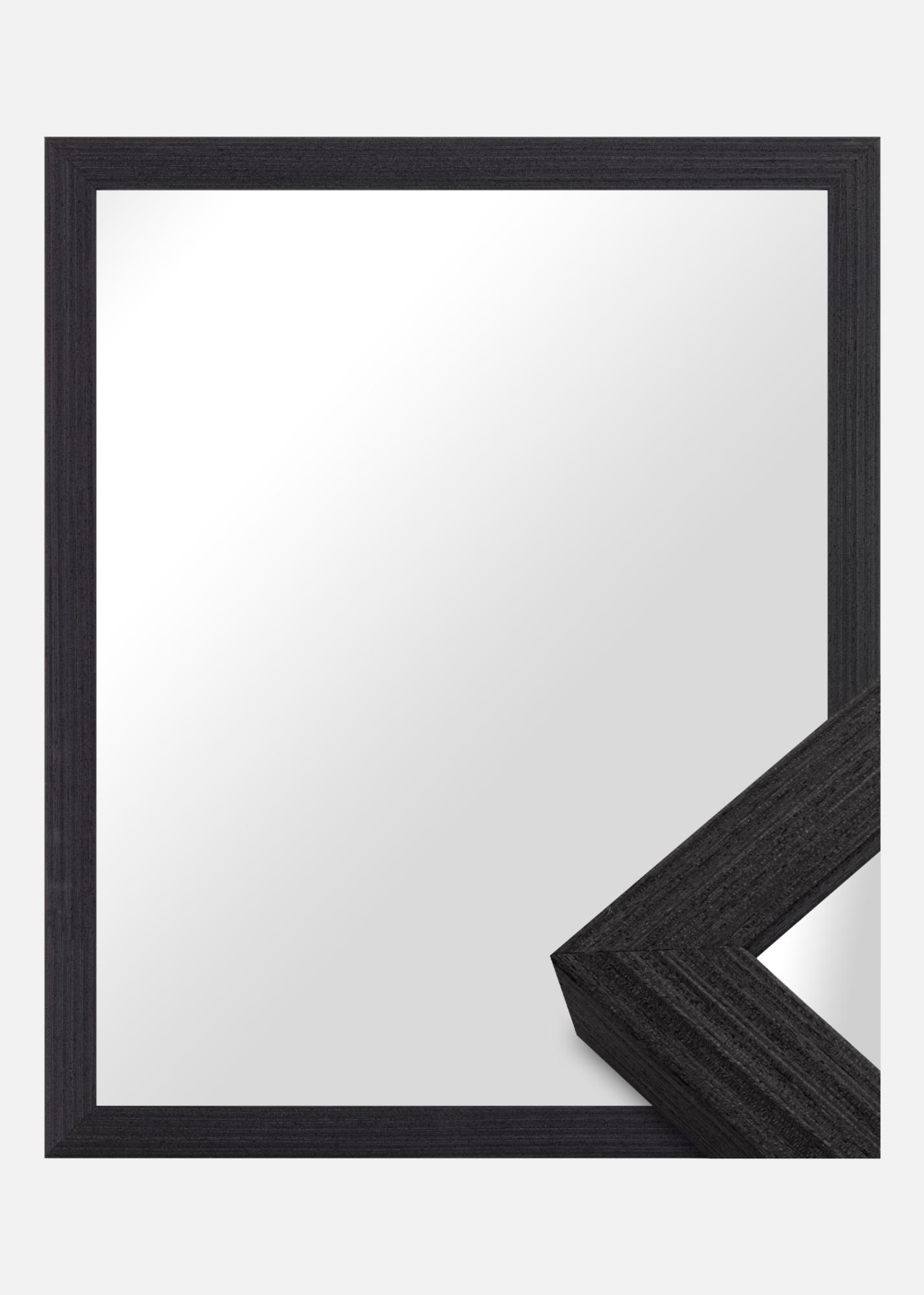 The frame of the mirror is 28 mm wide and has a depth of 33 mm, providing a stable and robust feel without overpowering the room. The black color of the frame gives a modern touch and creates a fine contrast against the mirror glass. Made of pine, this mirror offers both durability and a natural feel that complements its sleek appearance.