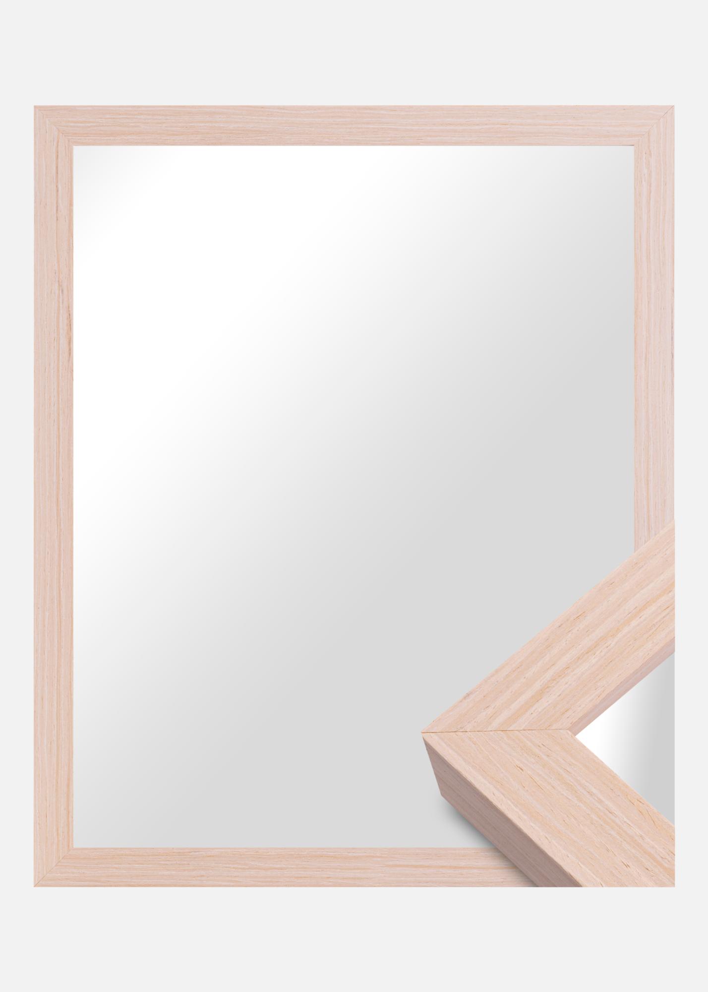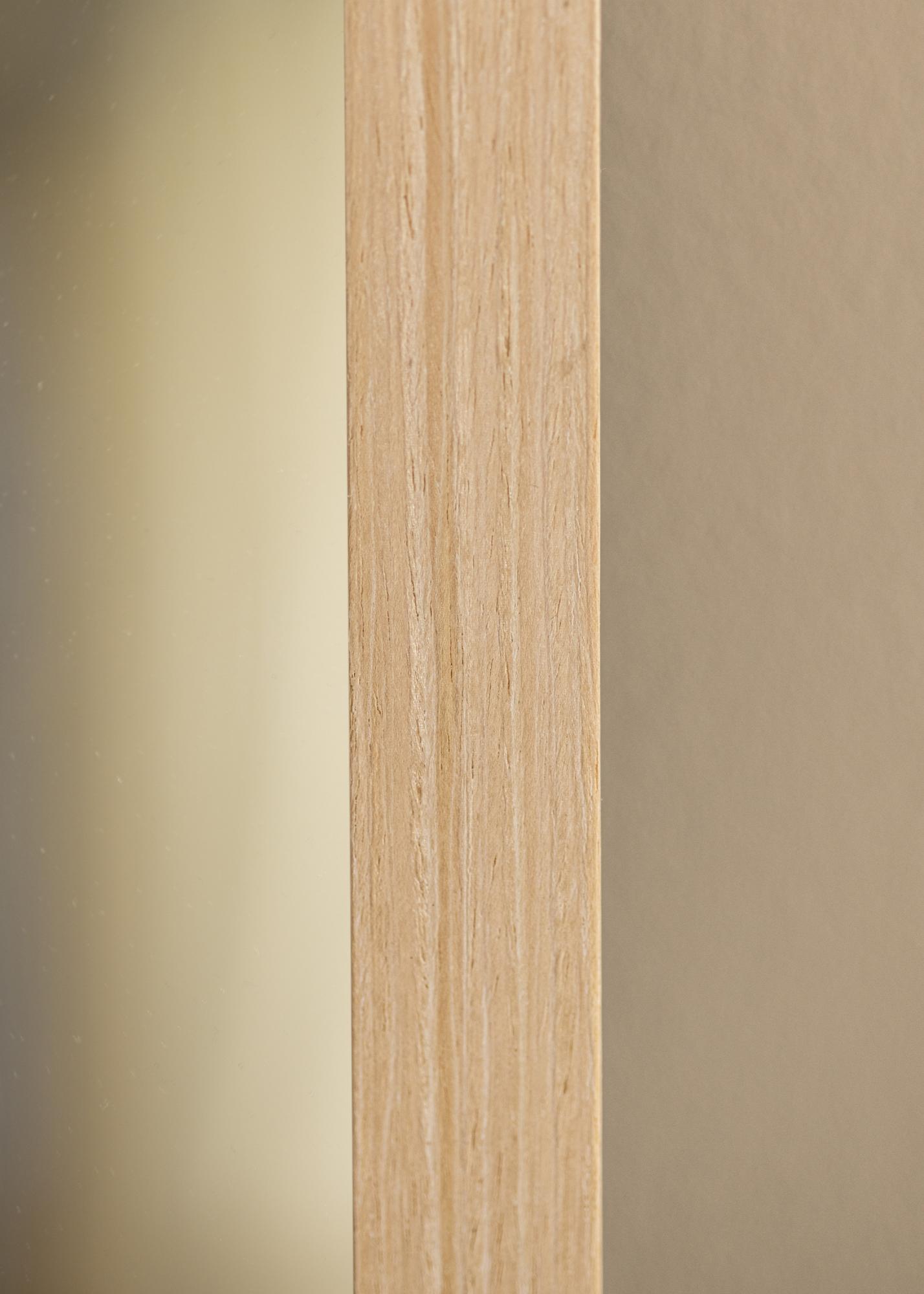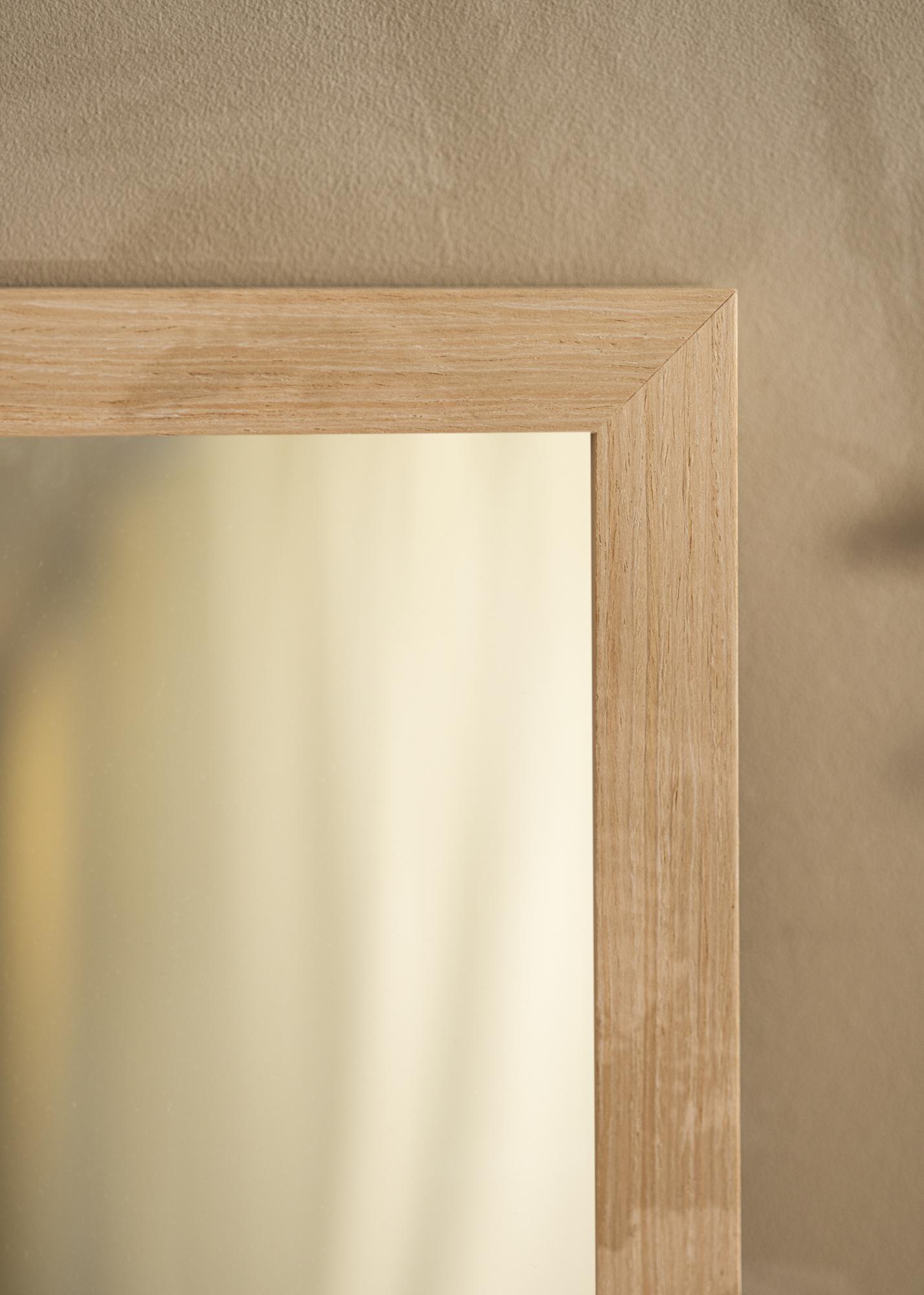 The frame of the mirror is 28 mm wide and has a depth of 33 mm, providing a stable and robust feel without dominating the room. Made of pine, it combines durability with a lightness that makes it easy to handle and mount. The satin matte finish enhances the natural structure of the wood without reflecting light, creating a pleasant atmosphere in the room.