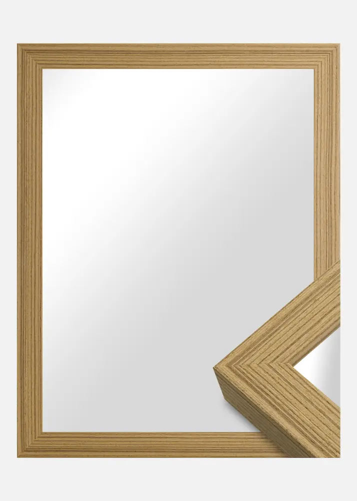 Mirror Cotswold Oak is a custom-made mirror manufactured by us, which means you can get it in precisely the dimensions that best fit your home. With its oak-patterned surface and warm, golden tones, it becomes a stylish feature in any room. The distinct vertical grain enhances the wood feel and gives the mirror a natural and rustic character that is both inviting and elegant.