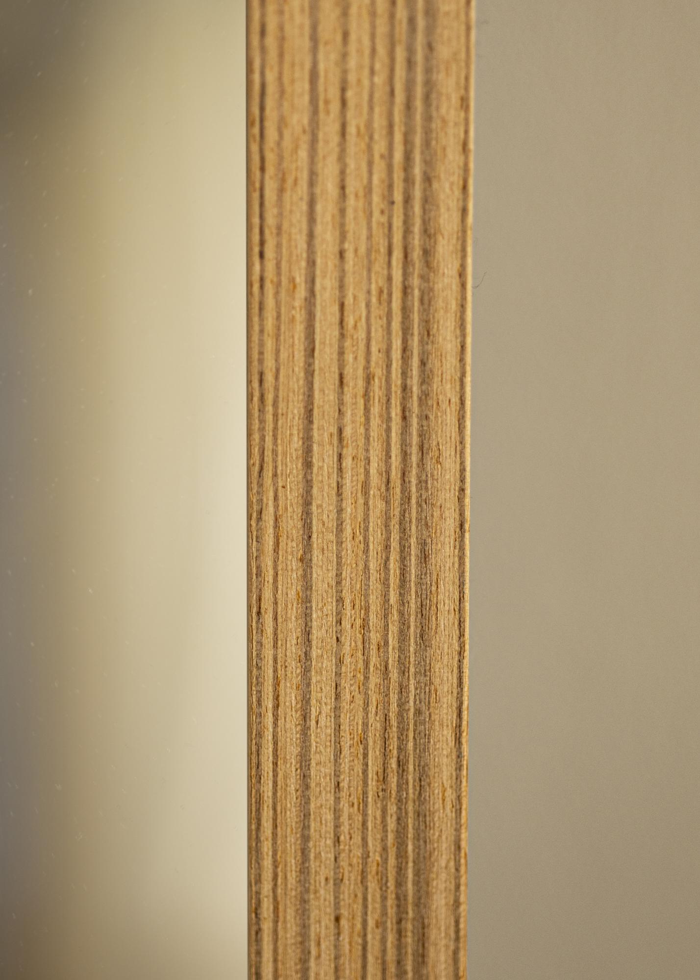 The frame of the mirror is 28 mm wide and has a depth of 33 mm, providing a stable and robust feel. Made of pine, this mirror offers durability that stands the test of time. The marked structure in the frame creates a lively depth and provides a tactile dimension that makes the mirror feel alive and dynamic.