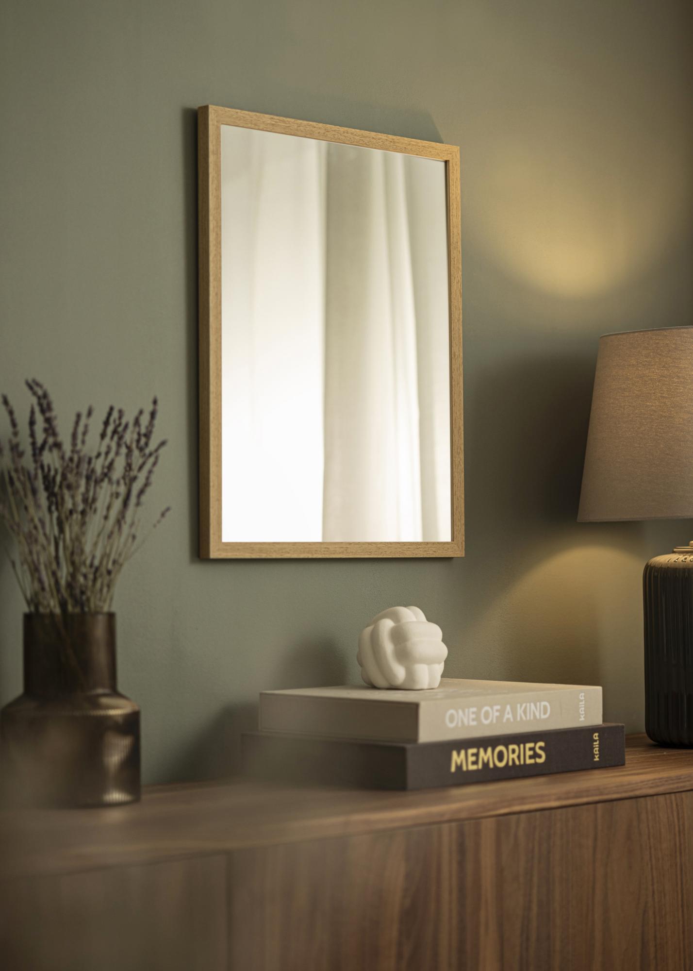 The frame of the mirror is made of ayous wood, which gives it both durability and style. With a width of 20 mm and a depth of 20 mm, the frame has a discreet yet clear presence that frames the mirror glass in a tasteful way. The surface has a matte finish with a lightly textured feel, which adds to the mirror's charm and makes it an excellent choice for both modern and traditional interiors.