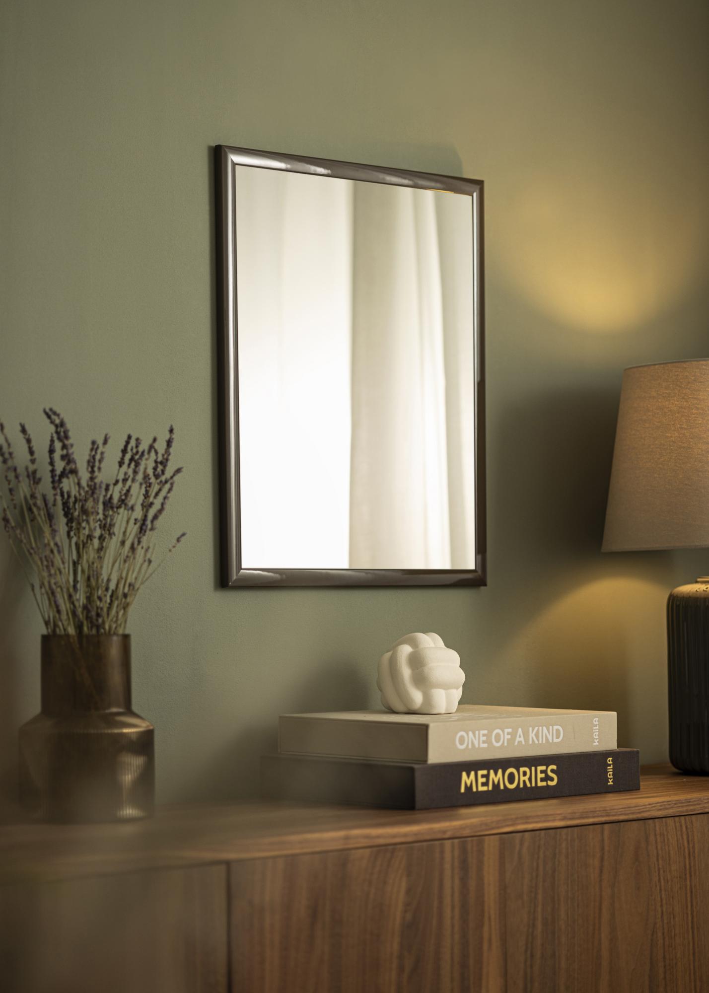 The frame of the mirror is 23 mm wide and made of ayous wood, providing a robust and durable construction. With a depth of 13 mm, the mirror has a discreet profile that blends into most environments without overpowering them. The dark gray shade is both modern and timeless, making the mirror suitable for various interior styles, from minimalist to more traditional.