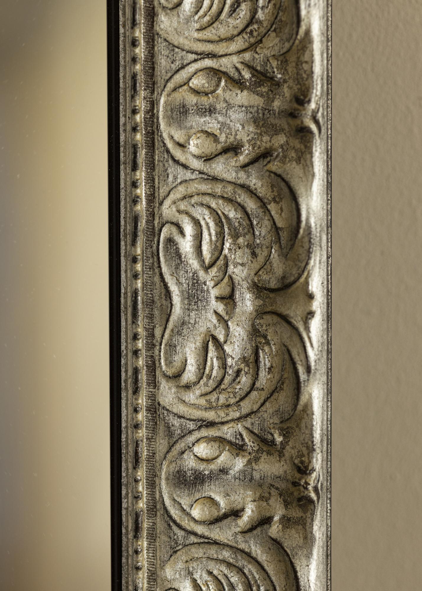 Mirror Durham Silver is a custom-made mirror manufactured by us to fit your specific needs. With its silver-colored frame and antique finish, it becomes a stylish element in any room. The ornamental relief on the frame gives the mirror a unique character and contributes to a rustic yet elegant feel.