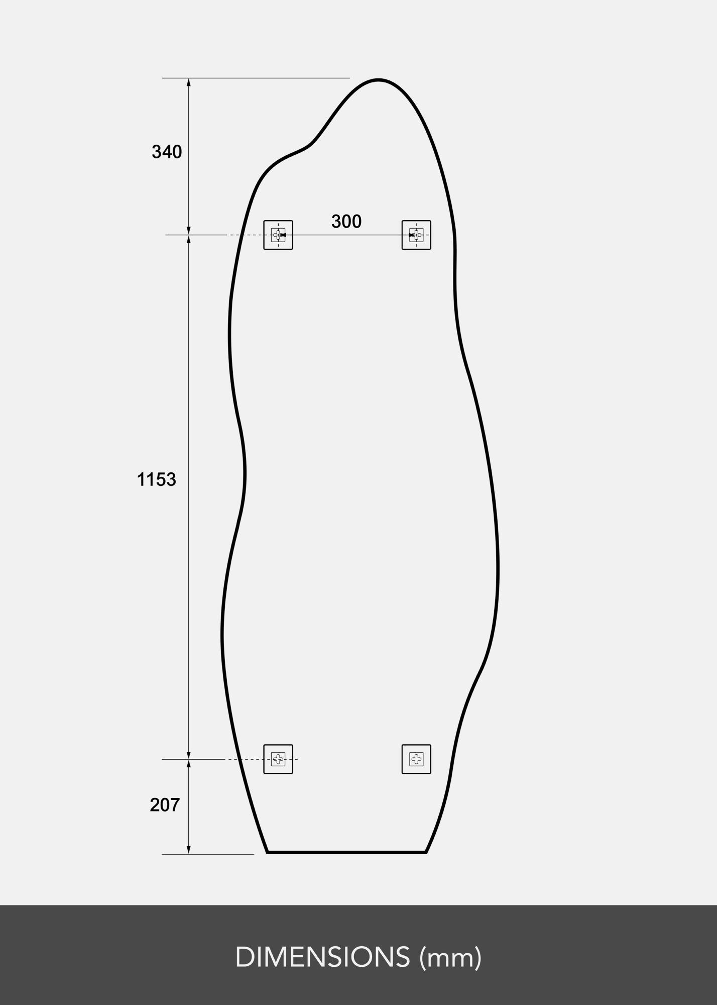 The mirror has a unique wave-like shape that is wide at the base and gracefully curves upwards. This unusual shape makes it a work of art in itself and adds a dynamic touch to your wall. It is designed to be a focal point in your home, whether placed in the hallway, bedroom, or living room.