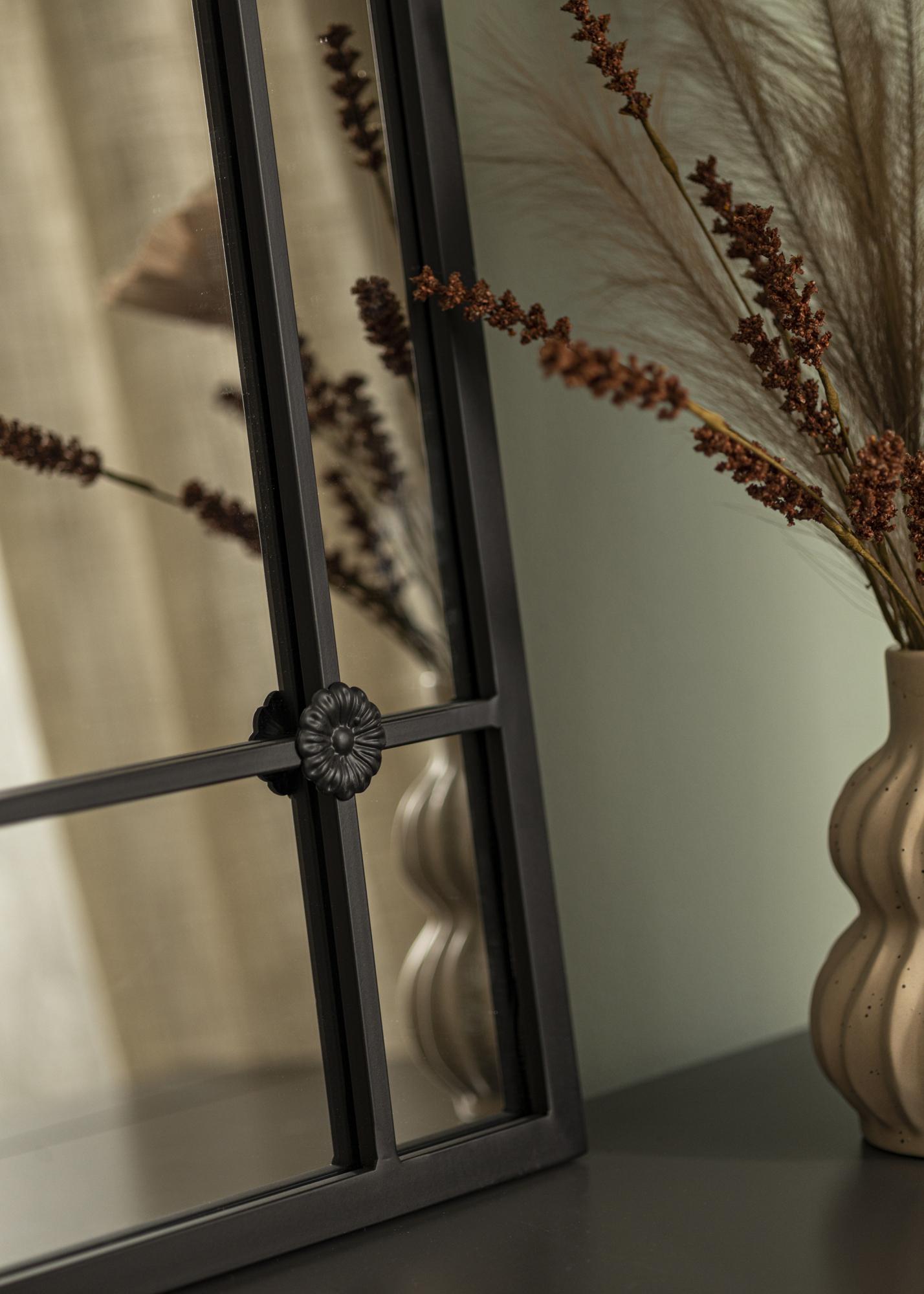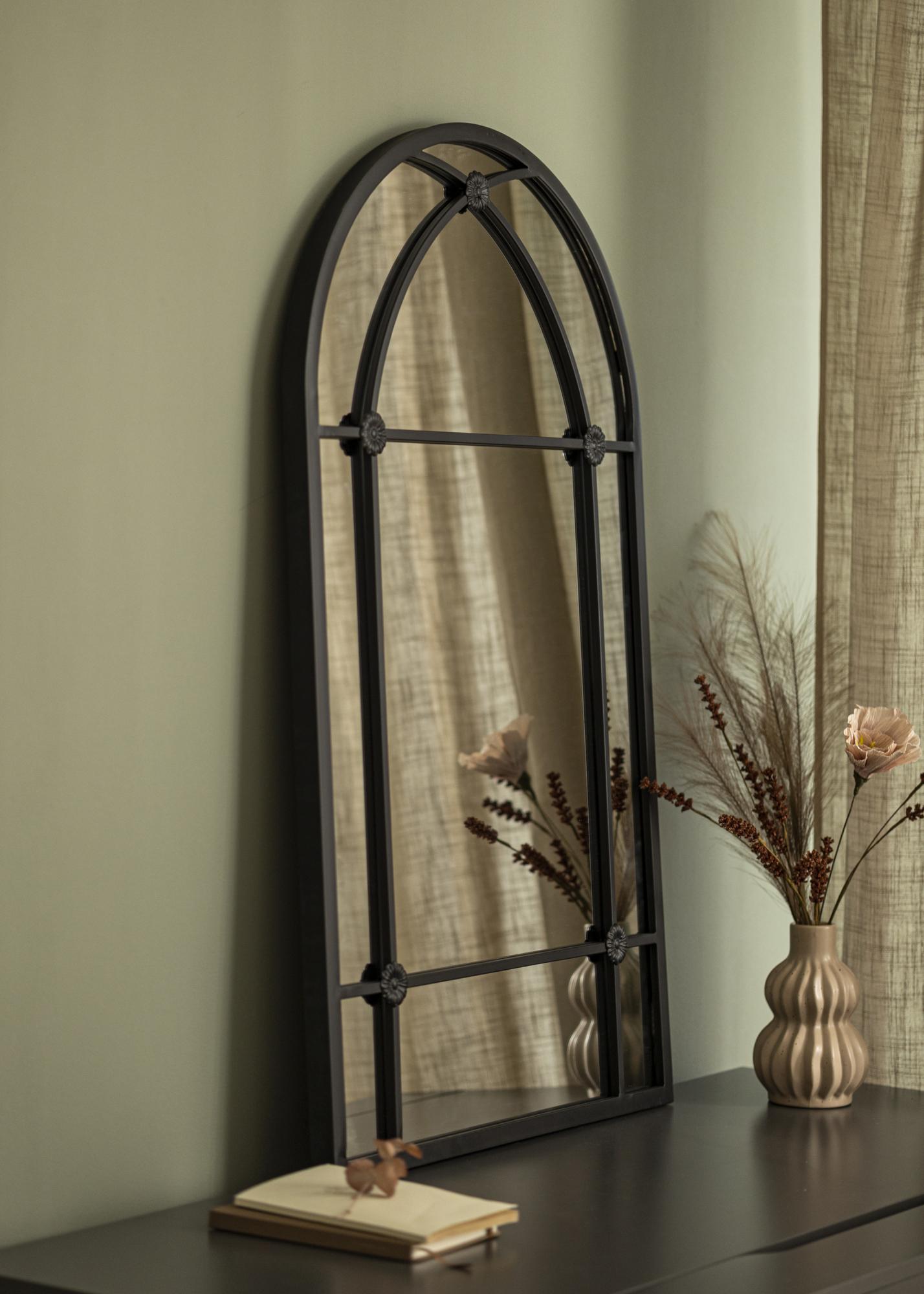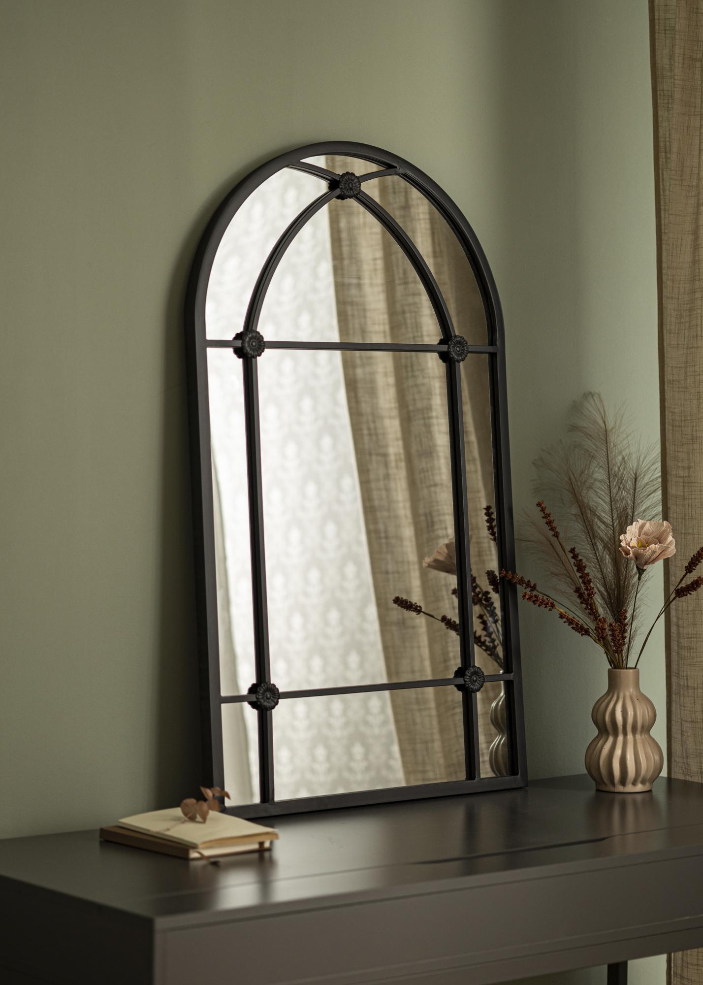 With its arched silhouette and intricate wrought iron work, this mirror resembles classic windows that give a sense of depth and space to the room. It is not only a practical object for daily use, but also an artistic interior detail that captures the eye and contributes to the atmosphere of the room.