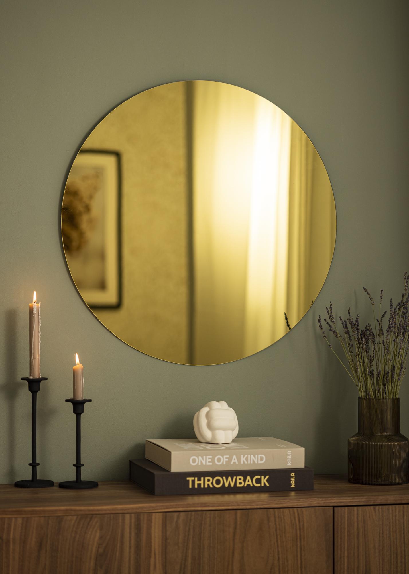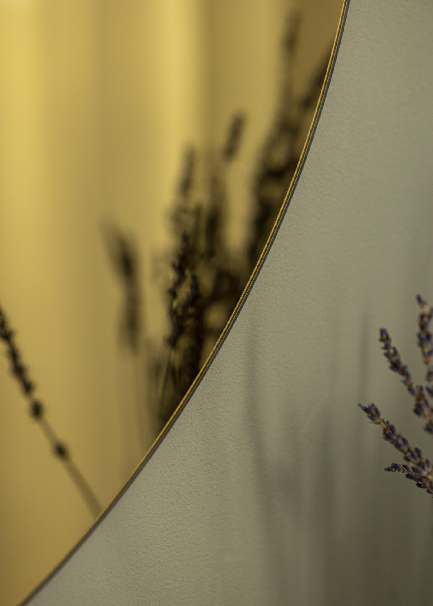 This is an elegant, minimalist wall mirror with lightly tinted yellow glass that makes this mirror an interesting home decor feature. The thin mirror glass is a soft yellow colour that is both mild and glowing in appearance. The stylish round shape is perfectly complemented by the thin mirror glass.