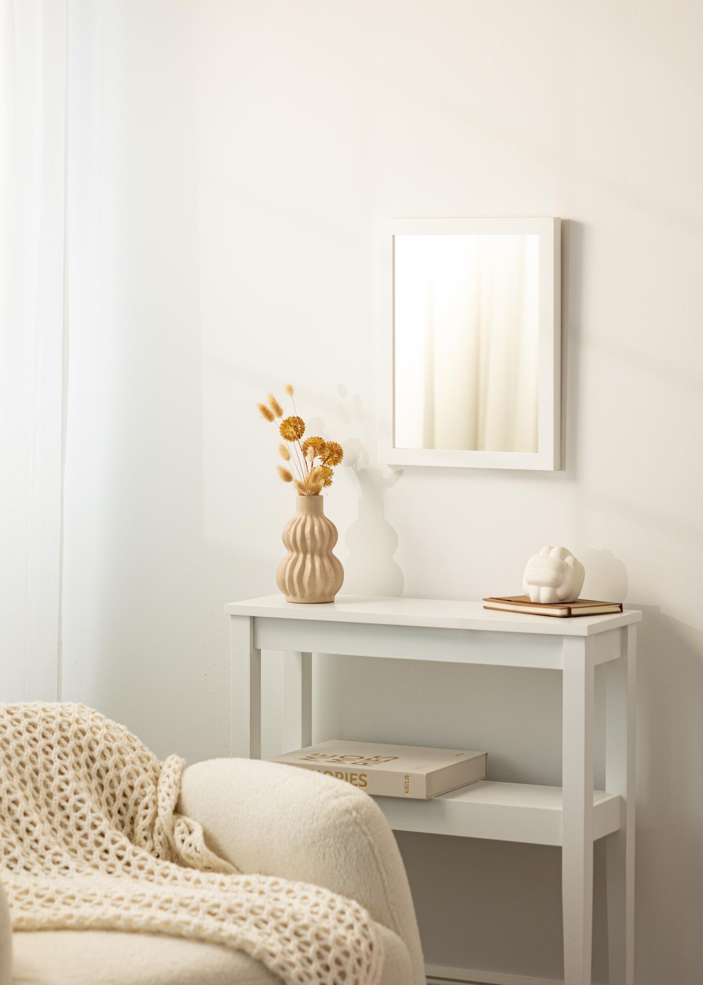 The matte white surface of the mirror creates a bright and fresh feeling, making it easy to combine with other colors and materials in your home. Whether you want a large mirror for the hallway or a smaller version for the bathroom, you can order Mirror Hathor White in precisely the dimensions that suit your needs.
