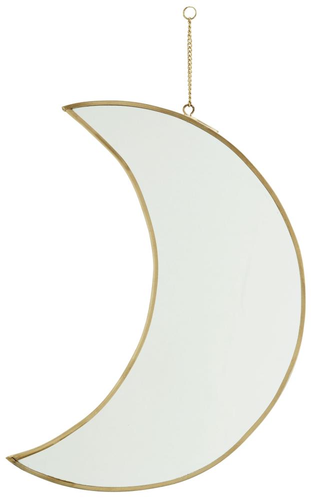 This fantastic mirror from Madam Stoltz will add an eye-catching detail to your home. The arresting moon-inspired design, combined with the brass frame, makes for a very elegant mirror. The mirror is hung with an attractive chain, adding an elegant finishing touch to the overall design. This mirror model is available in two different sizes, and this is the 30 cm-high version. The neat size makes the mirror ideal for mixing and matching with other mirrors and wall decorations.
