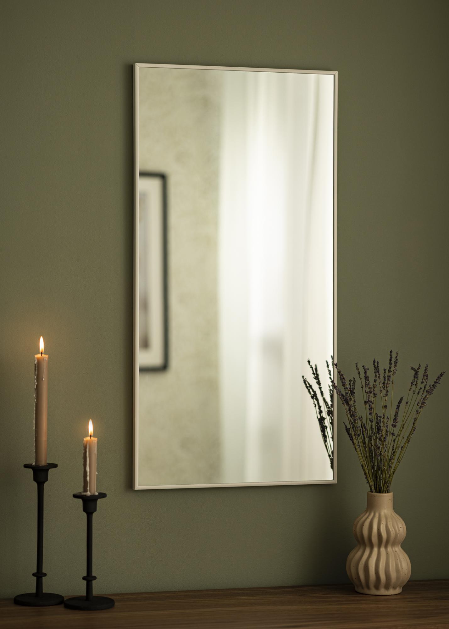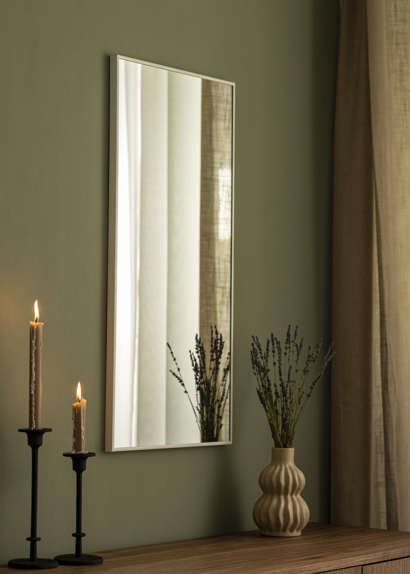 Create a sense of space and light in your home with this stylish mirror. With its dimensions of 40.5x80.5 cm, it is perfect for creating the illusion of a larger room or as a practical detail in the hallway. The white aluminium frame adds a modern touch while keeping the design clean and timeless.