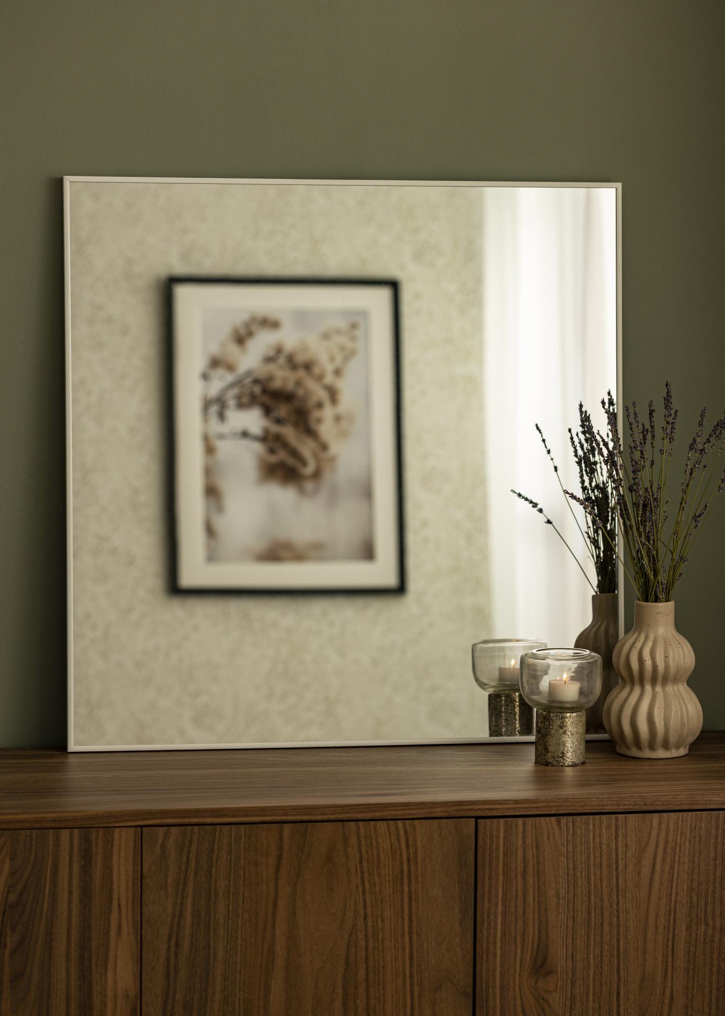 Discover the stylish elegance of our rectangular mirror, perfect for adding a sense of space and light to your home. With its generous dimensions of 75x75 cm, the mirror offers a practical and decorative function in any room. Its white aluminum frame adds a modern touch while maintaining a timeless charm.