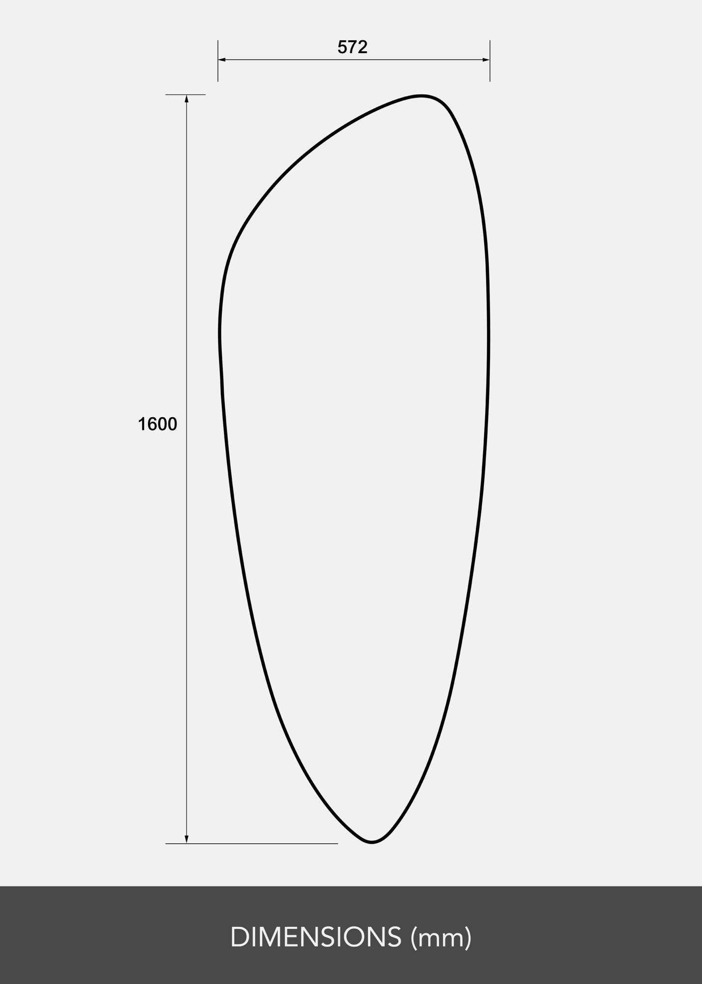 Discover the unique charm of our oblong-shaped mirror, a perfect combination of functionality and aesthetics. With its generous size of 58x160 cm, this mirror offers a full-length reflection that is ideal for bedrooms, hallways, or dressing rooms. The mirror has an elegant, oblong droplet shape that adds a contemporary and soft character to any room, and its grey-toned glass adds a sophisticated and modern touch that harmonizes with a variety of interior styles.