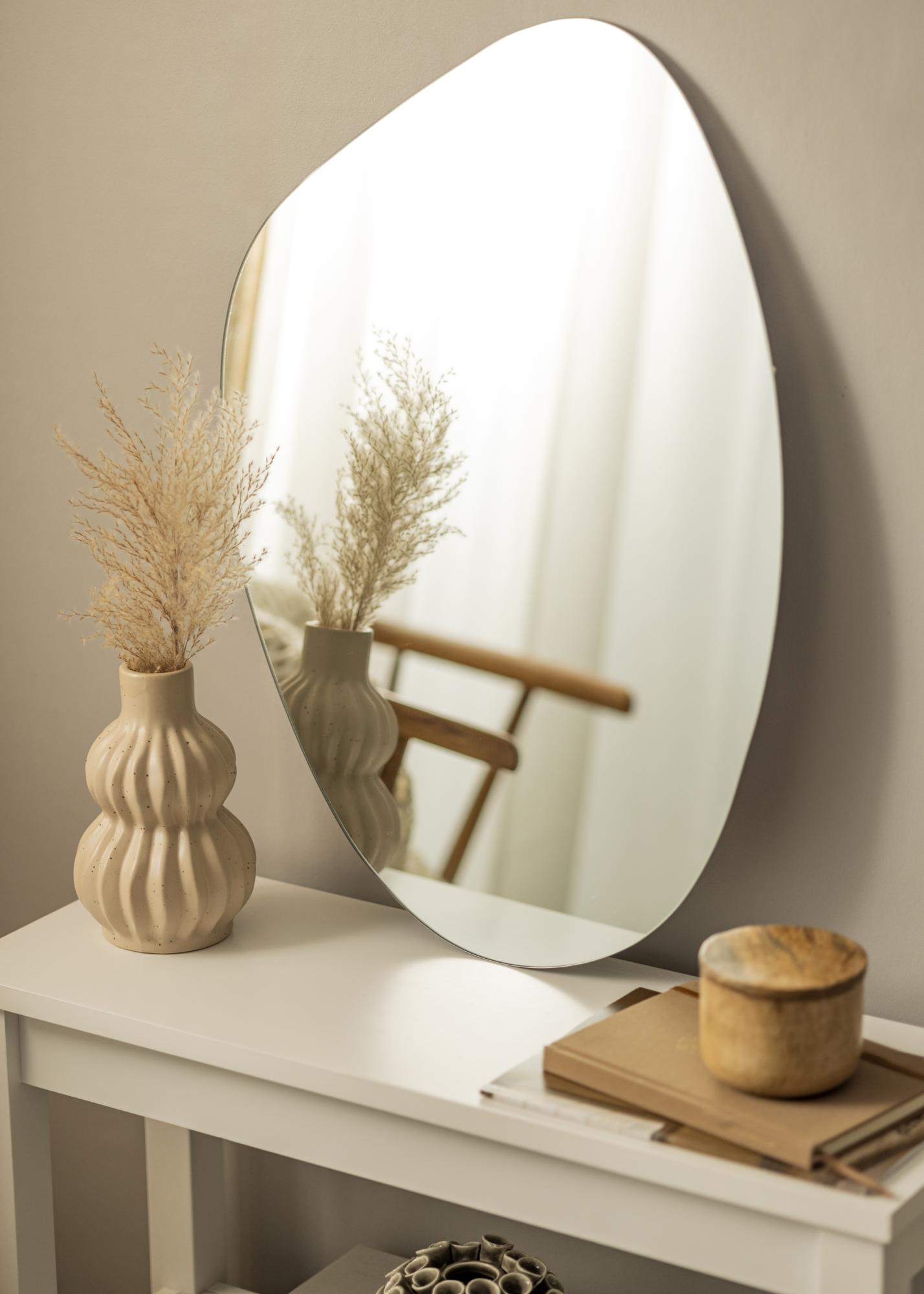 This 50x60 cm mirror has a minimalist appearance with a frameless design and a thin mirror glass. It’s easy to mount on the wall using the brackets on the back of the mirror.