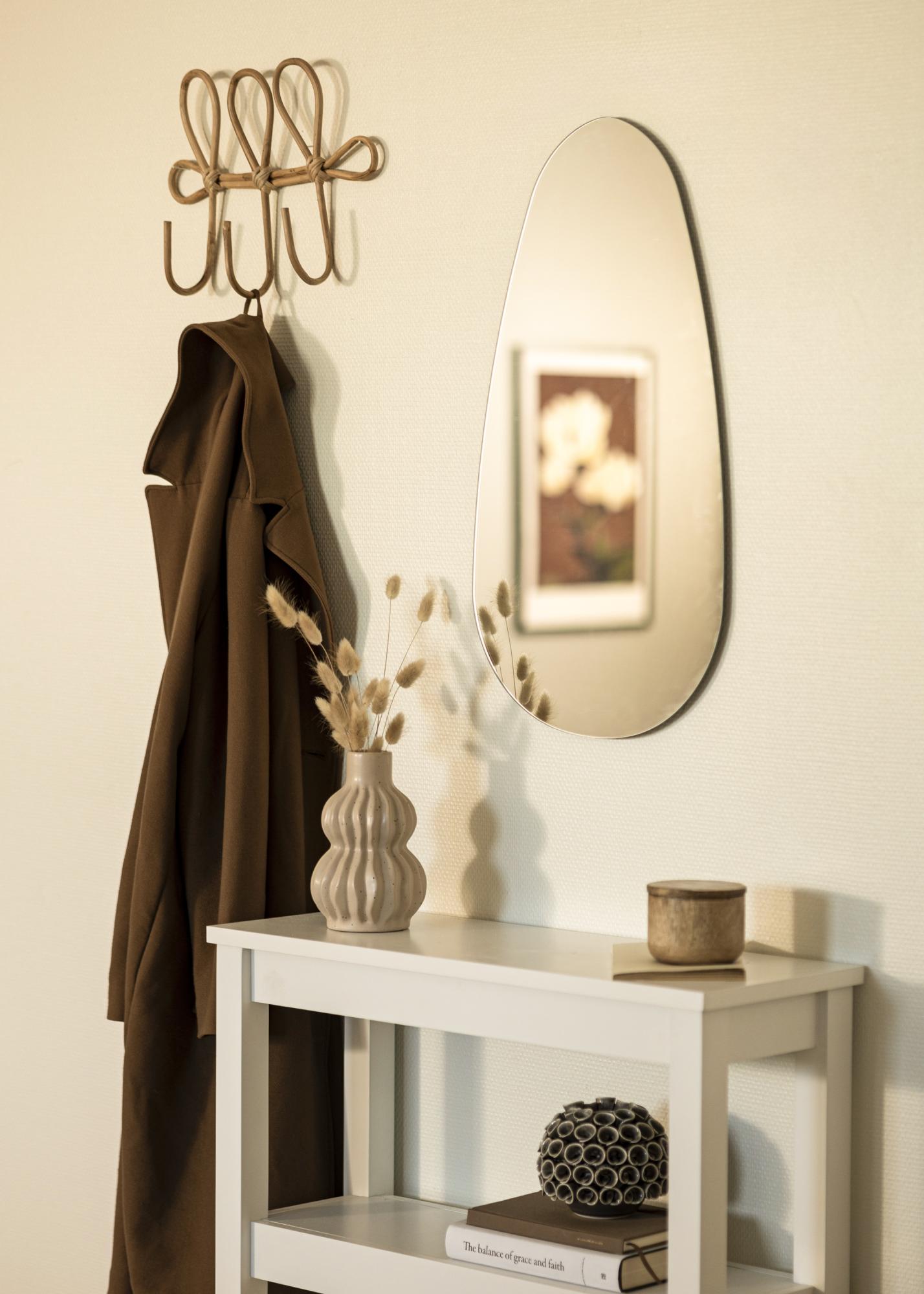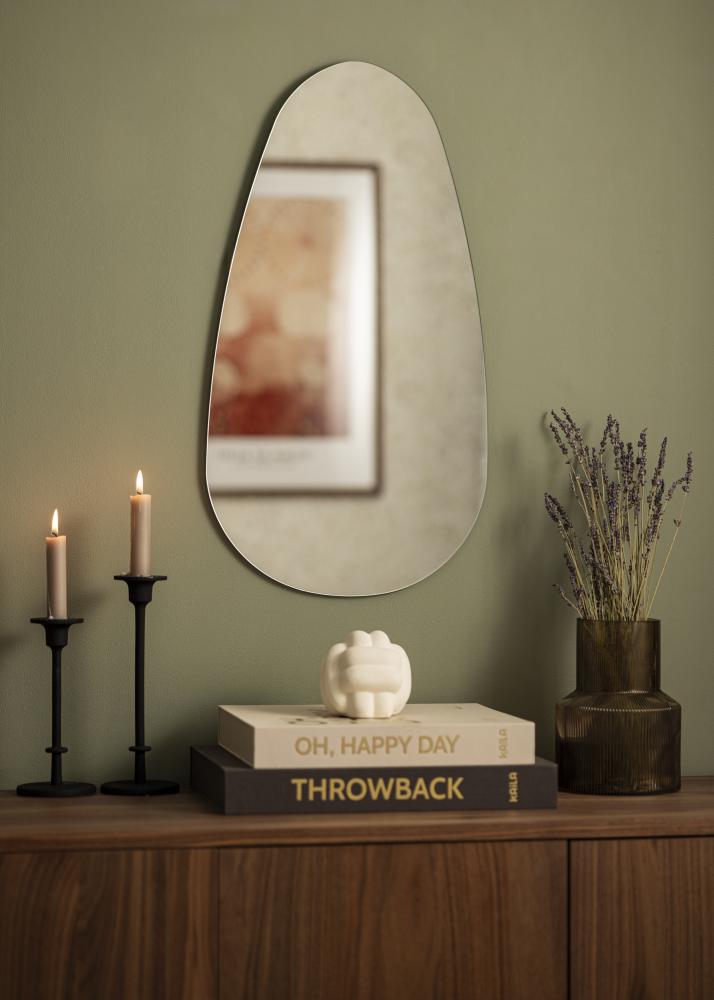 Discover the unique charm of our drop-shaped mirror, a timeless accessory that transforms any room into an oasis of style. With its dimensions of 35x65 cm, this mirror is perfectly sized to fit in a variety of spaces, from the hallway to the bedroom.