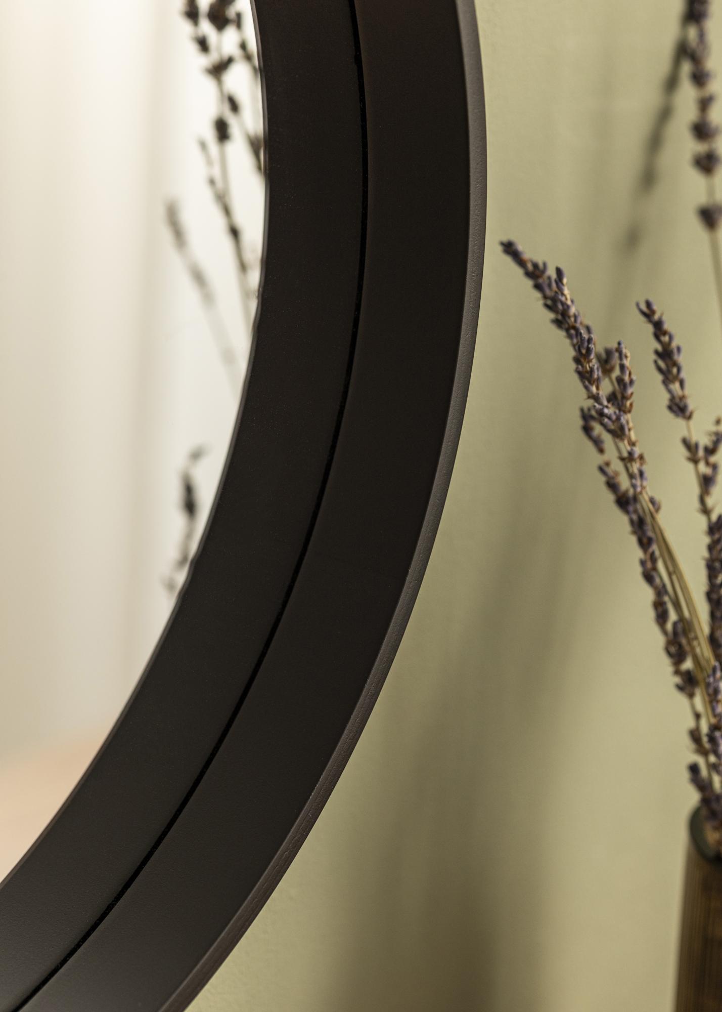 Discover the elegant simplicity of our round mirror, a timeless interior detail that fits perfectly in every home. This stylish, round mirror stands out with its black frame, providing a fresh and modern feel to the room. Its minimalist design allows it to blend in with various interior styles, from Scandinavian to industrial.