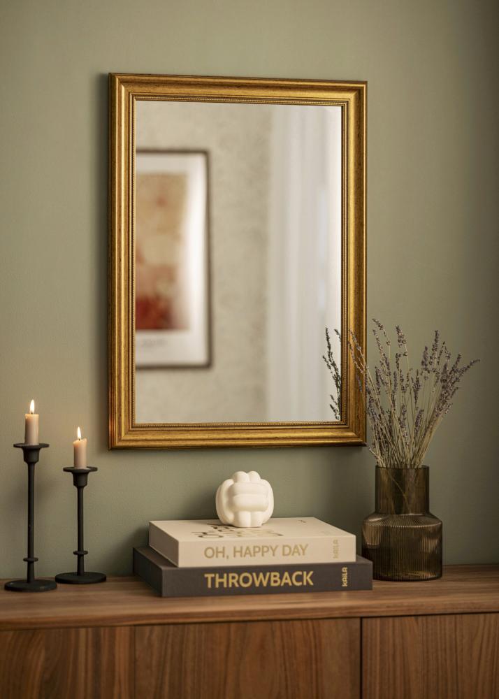 Rococo is a mirror series from Estancia with a beautiful frame in an elegant Rococo style. This antique mirror design brings timeless charm and a refined look to any space. The frame is gold-coloured, completing the luxurious and elegant effect. This eye-catching classic will serve as lovely decorative detail for the hall, bedroom or living room. The mirror is available in a range of sizes, so you can choose the one that best suits your home and tastes. The mirror measures 50x70 cm.