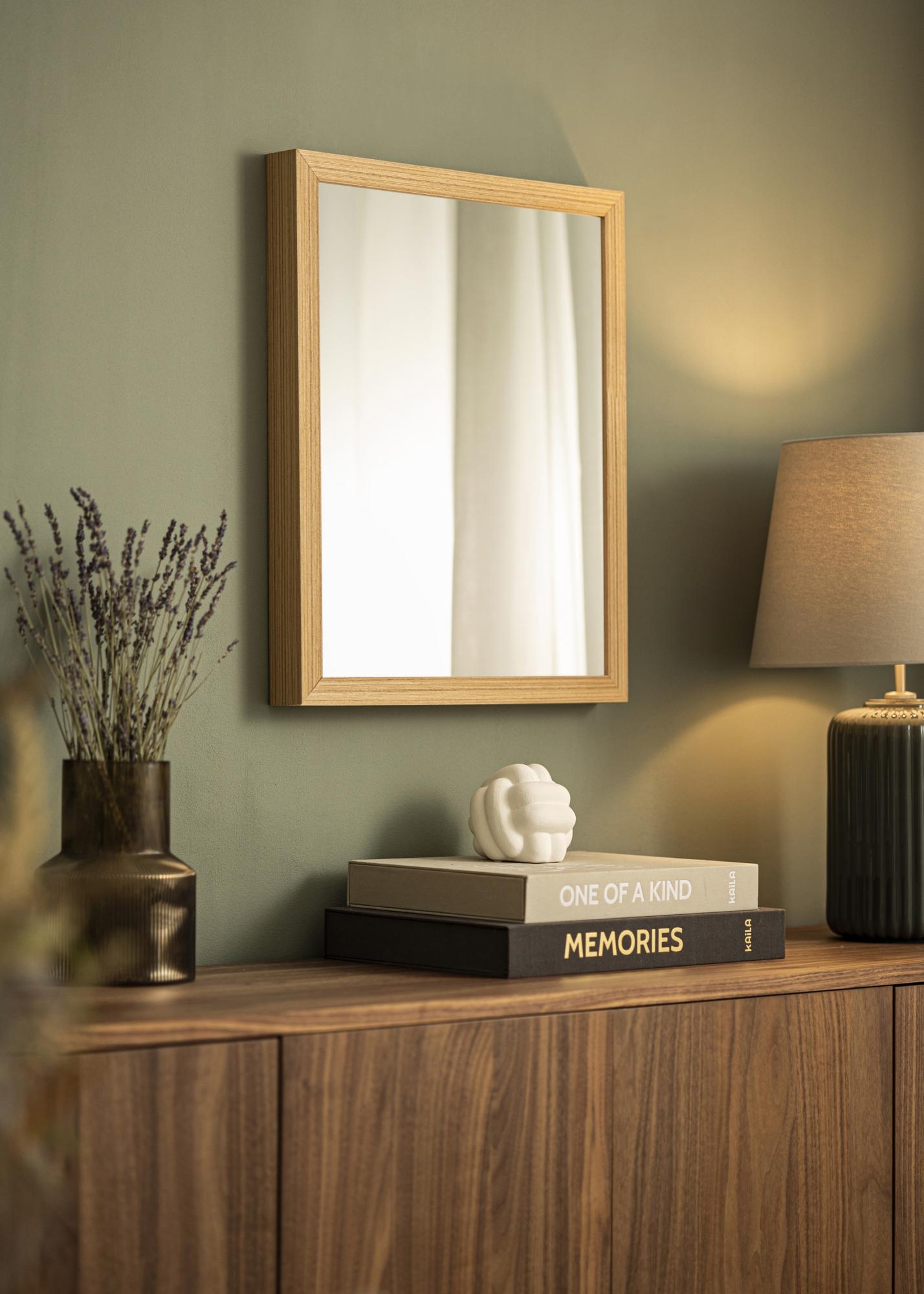 This mirror has an elegant oak-patterned finish that gives a natural and stylish impression. The 48 mm wide frame list encases the mirror in a tasteful manner and contributes to its robust appearance. With a depth of 42 mm, the frame also gives a sense of stability and quality, making the mirror a durable part of your interior.