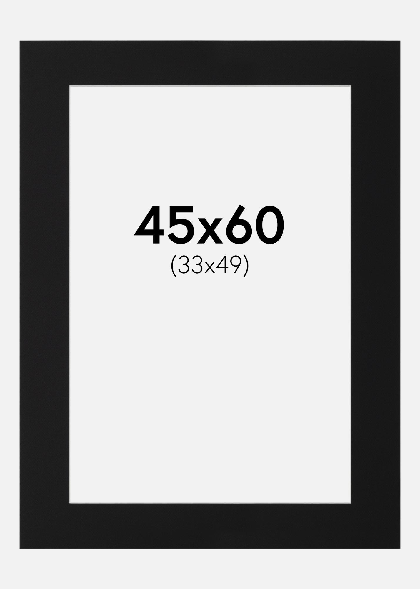 This elegant black mat board is the perfect choice for giving your pictures and artworks a stylish framing. With a bevel-cut inner edge and a white core, a subtle contrast effect is created that adds depth and elegance to your subject. The mat board is designed to fit pictures sized 34x50 cm, while the outer dimension is 45x60 cm, making it ideal for both modern and classic framings.