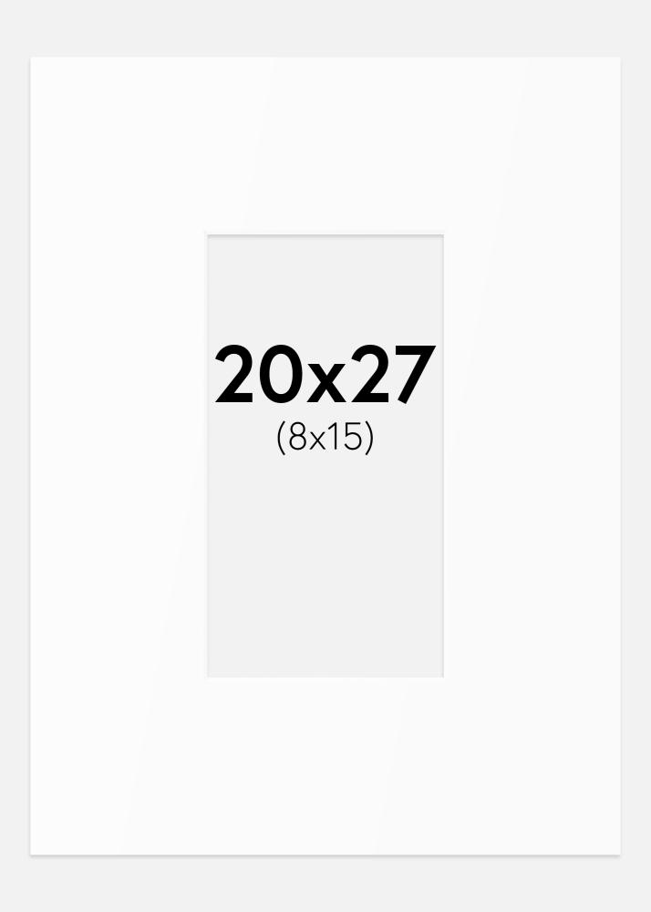 This elegant mat in a white shade is the perfect choice to highlight your pictures and artworks. With a bevel-cut inner edge in the same white color, a stylish framing is created that gives depth and dimension to your subject. The mat is designed to fit pictures sized 9x16 cm, while the outer measurement is 20x27 cm, making it ideal for various types of frames.