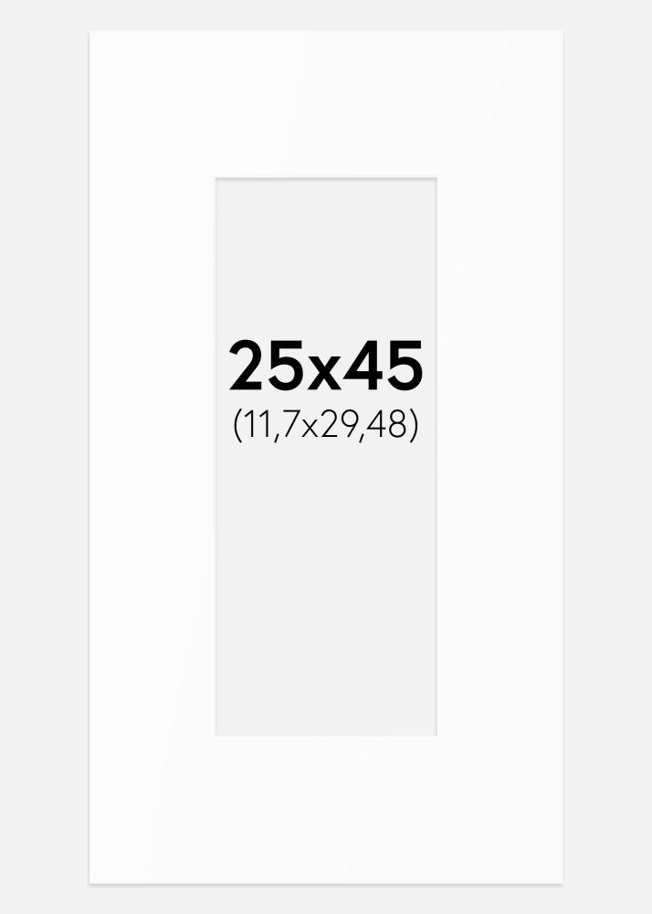 This elegant mat board in a white shade is the perfect choice to highlight your pictures and artworks. With a bevel-cut inner edge in the same white color, a stylish framing is created that gives depth and dimension to your subject. The mat board is designed to fit pictures sized 12.7x30.48 cm (5x12 inches), while the outer dimension is 25x45 cm, making it ideal for various types of frames.