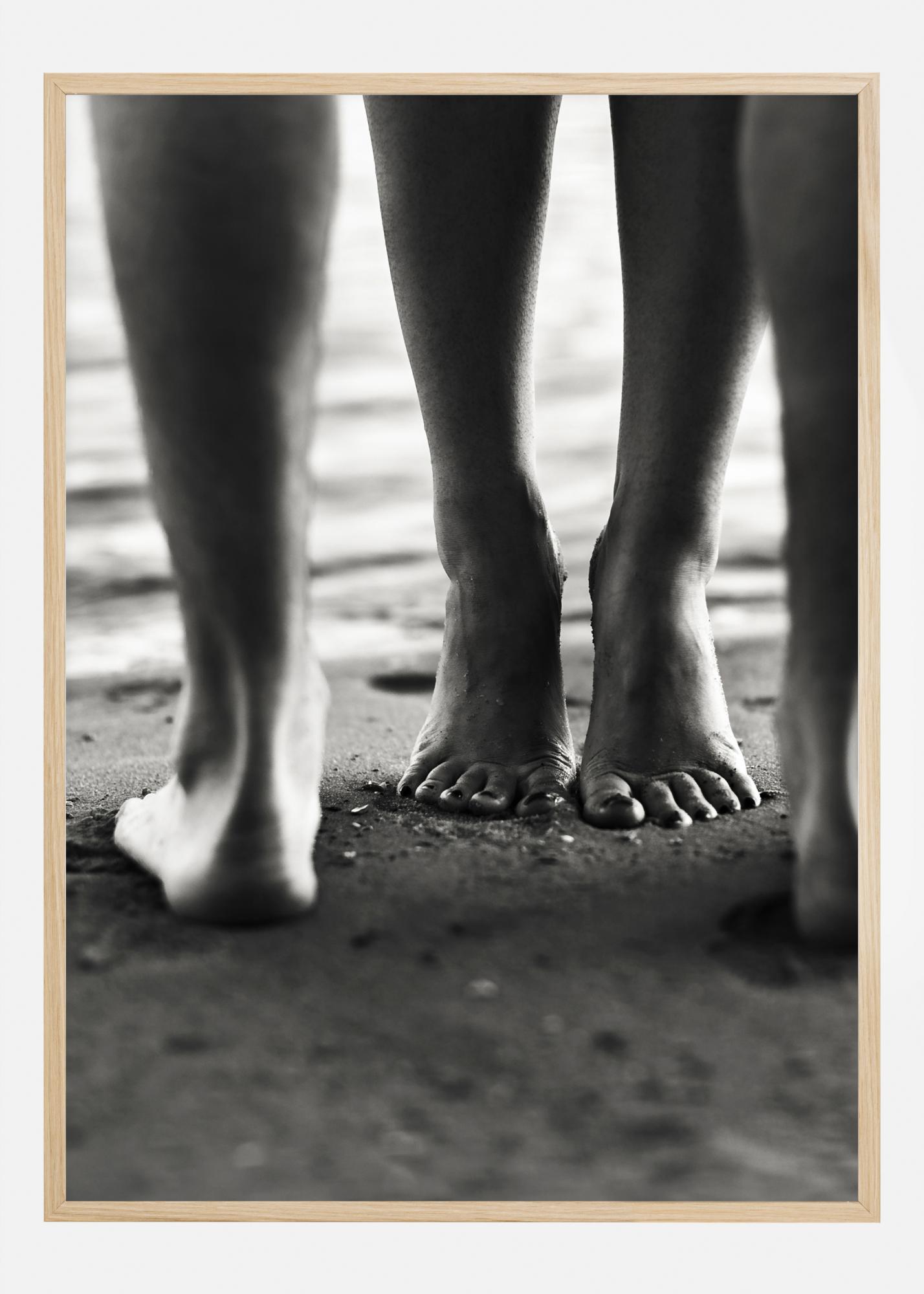 A romantic poster of a black and white close-up print of four legs taken on a beach. The image is made up of two people facing each other. Concentrate on the figure standing on tiptoes. This beautiful print gives a romantic feeling. Hang this print in your bedroom for a touch of romanticism.
