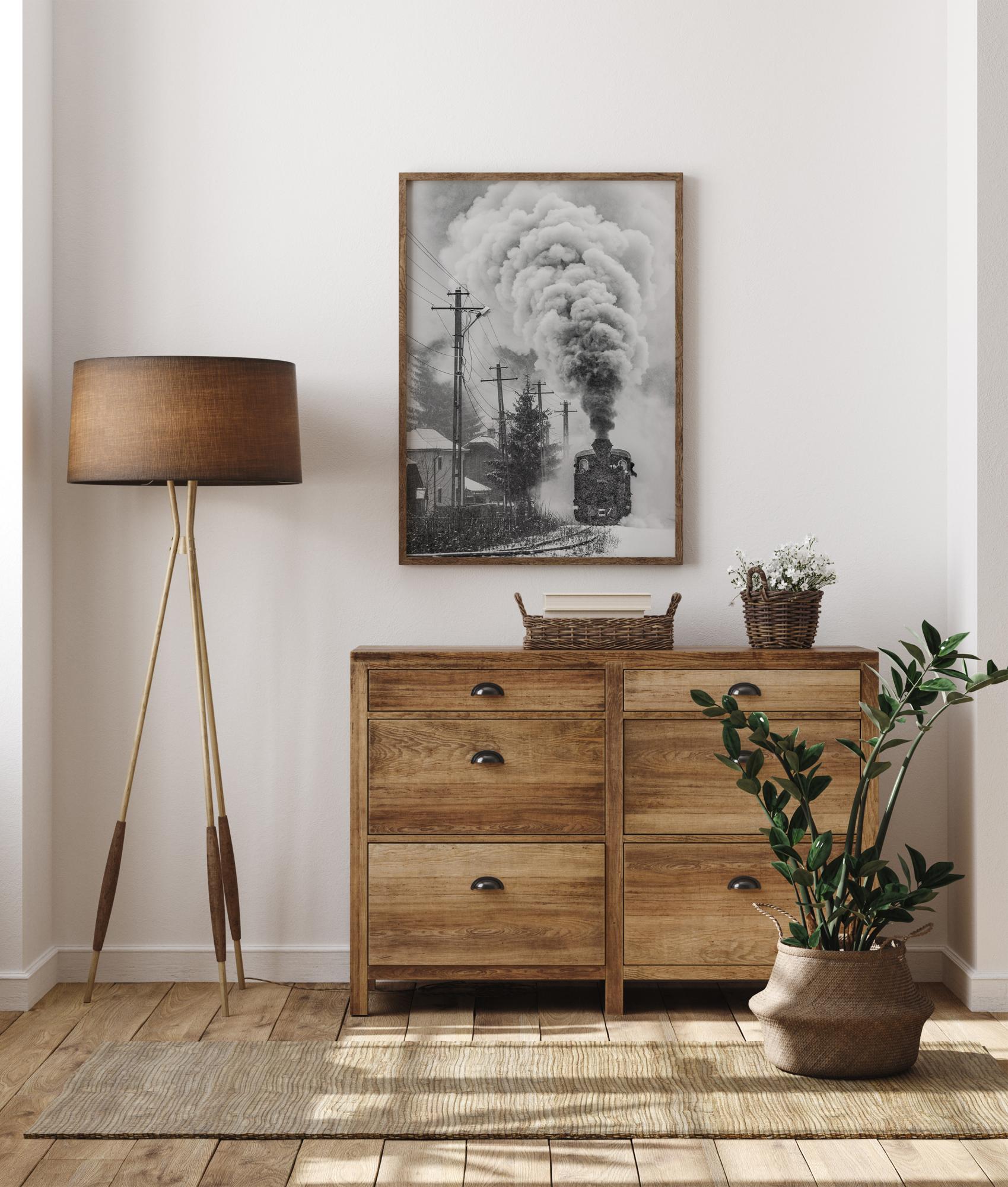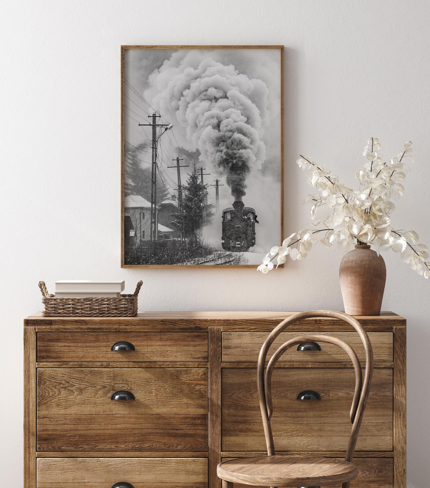 A dramatic poster of a steam train in the snow. Get sucked into the epic nature of this shot as the smoke billows high. Get that Christmas vibe when you add this to your home.