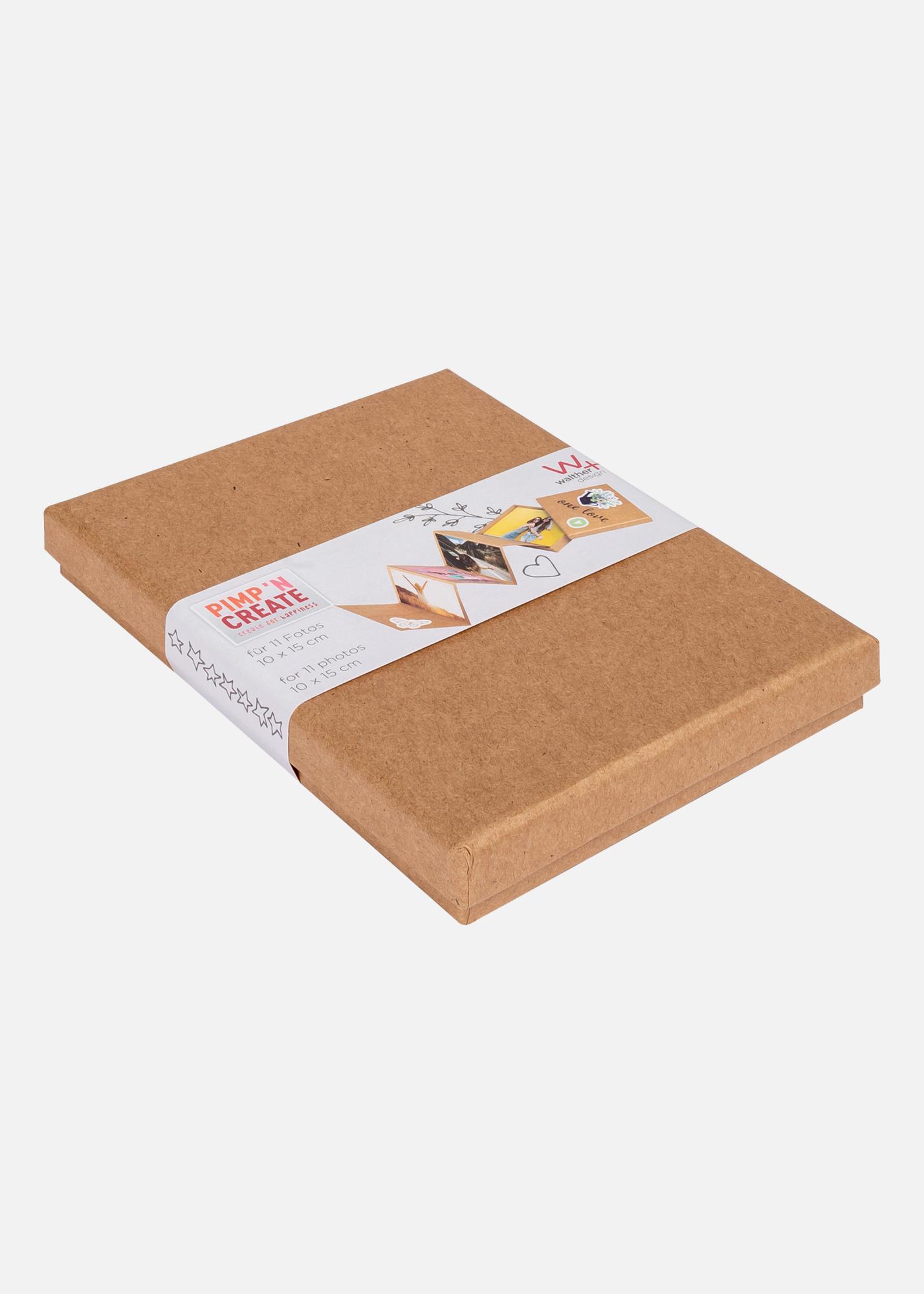 PAC Leporello-Box Brown is an elegant accordion album designed to hold 11 pictures in the size 10x15 cm. The cover is made of brown craft paper with a matching brown inside, providing a classic and timeless feel. This album is perfect for collecting and showcasing your memories in a stylish way.
