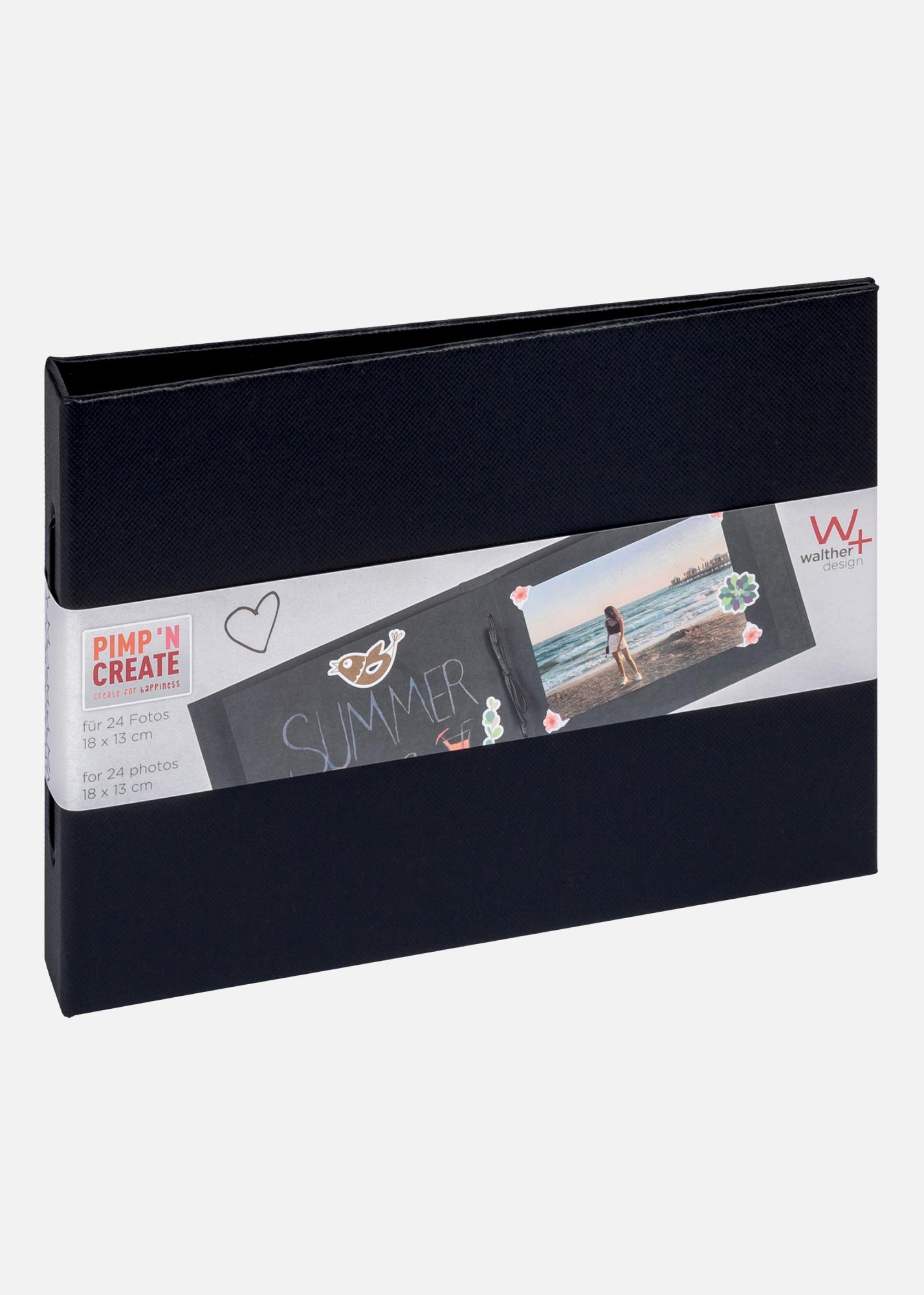 The album has a total of 12 black pages, which corresponds to 6 sheets, where you can paste your favorite pictures. The black pages provide an elegant background that highlights your photos in the best way. The black covers give the album a timeless and classic look that suits all occasions.
