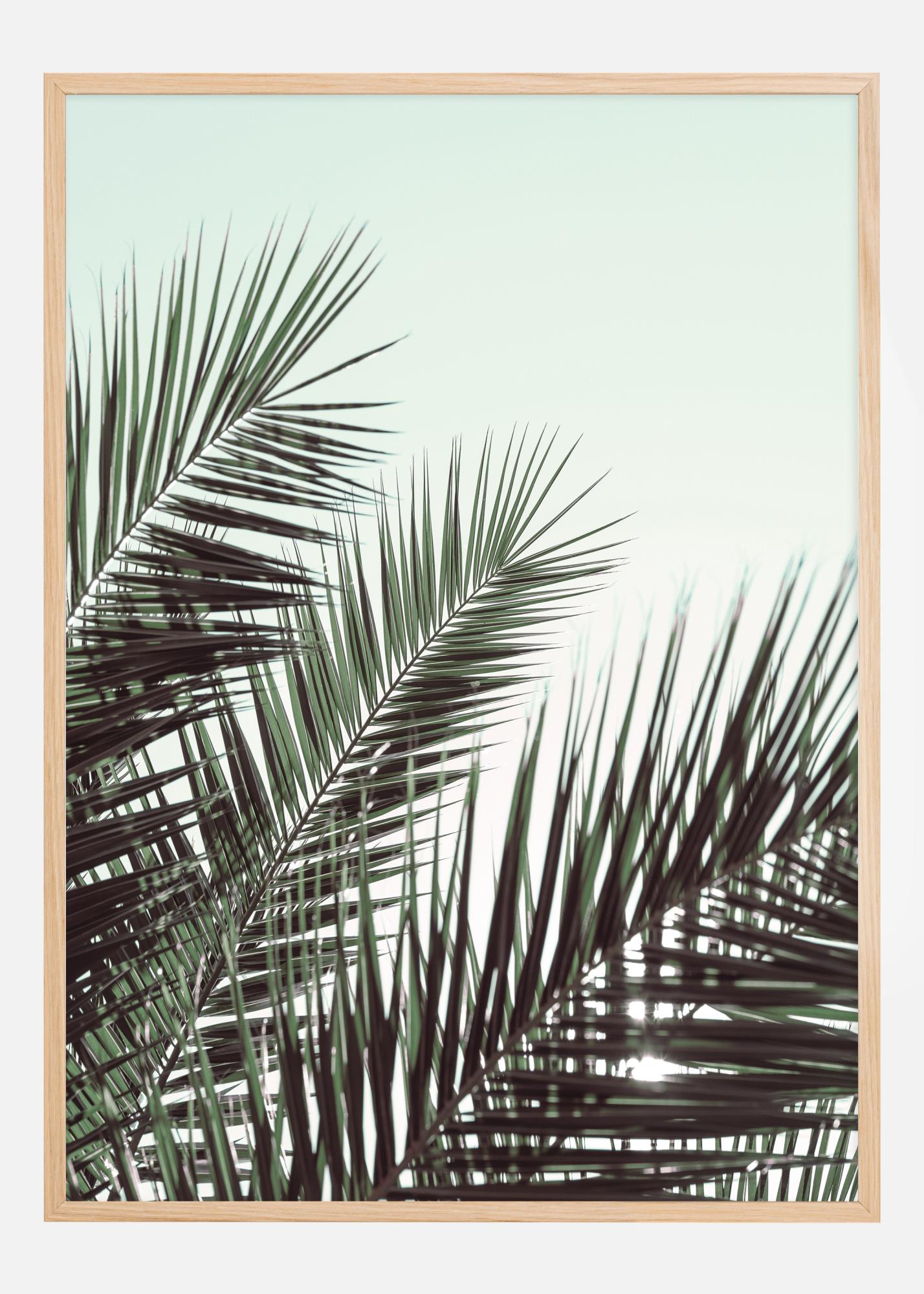 Transform your home into a tropical oasis with this sophisticated poster depicting lush palm fronds against a pastel-colored sky. This poster captures the gentle breeze and tranquility that can only be found in a warm climate. The detailed green leaves are beautifully rendered against a soft sky-blue background, creating a sense of eternal summer and nature in your space.
