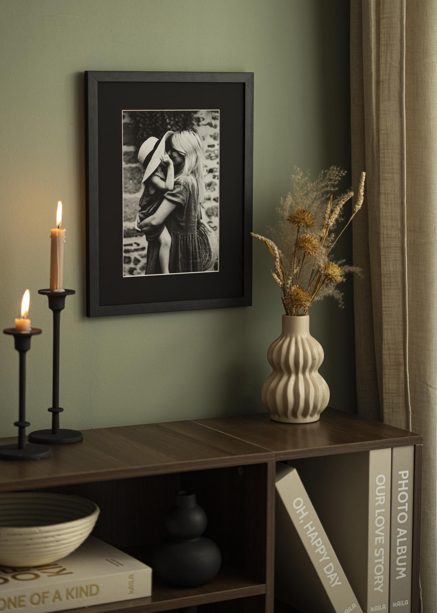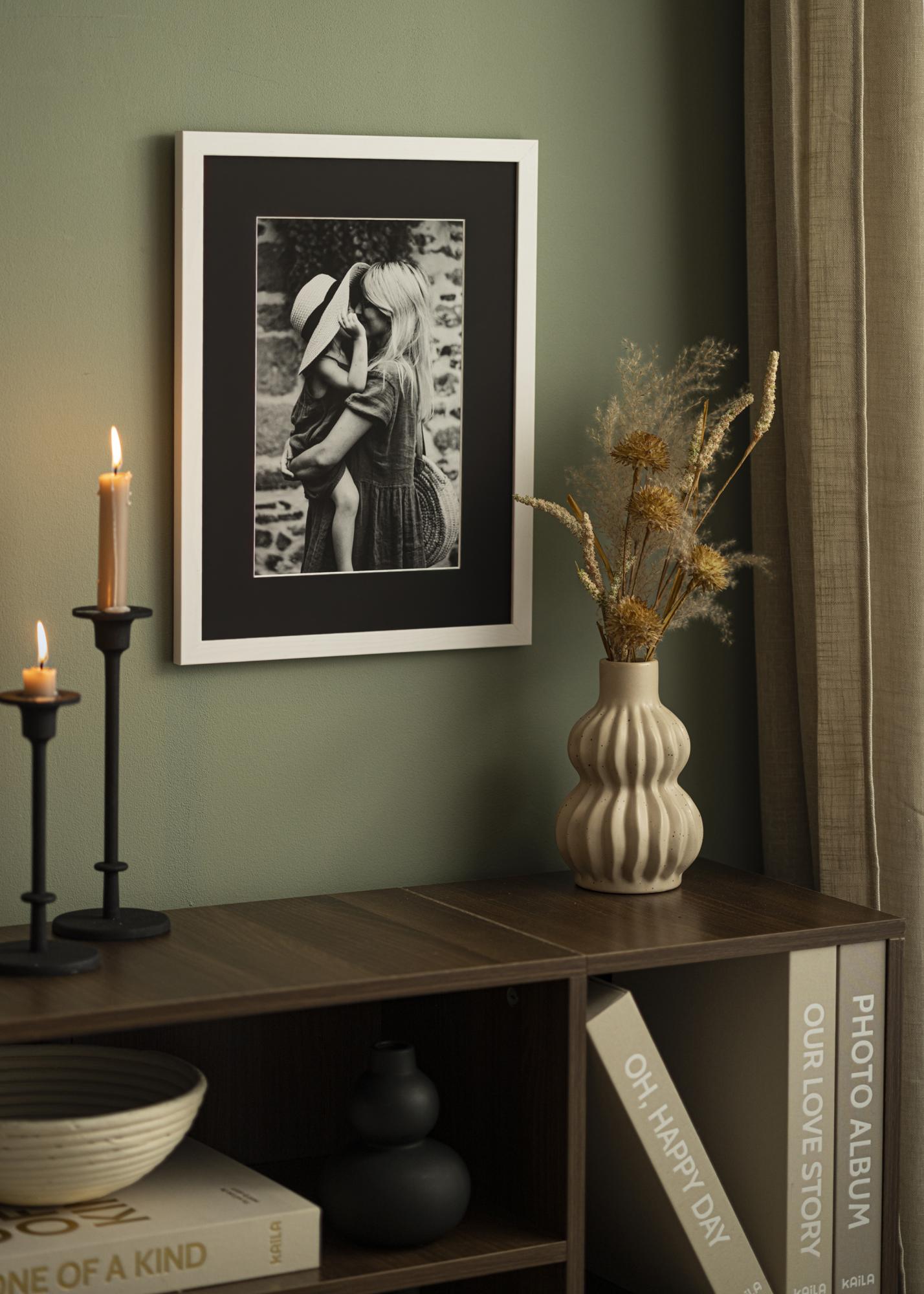 The beveled inner edge with a white core creates a subtle contrast effect that gives an elegant and deep framing. The matte black surface enhances the expression of the motif and suits both modern and classical frames. Whether you want to highlight a family portrait or an artwork, this passepartout will give your motif the attention it deserves.