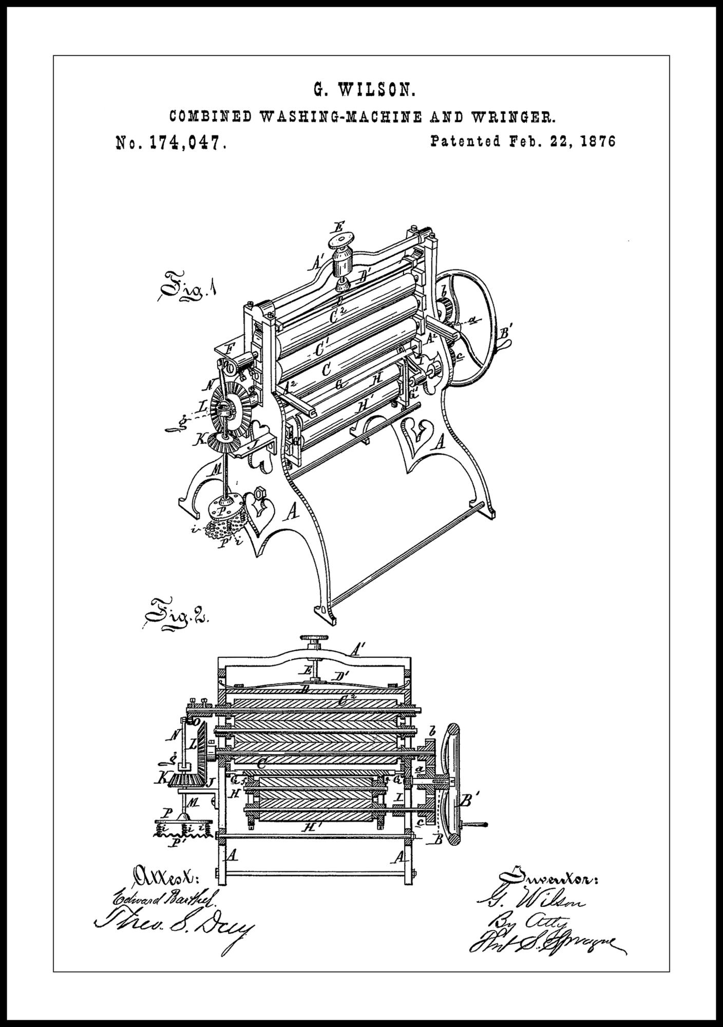 Patent Print - Combined Washing Machine - White (30x40 cm)